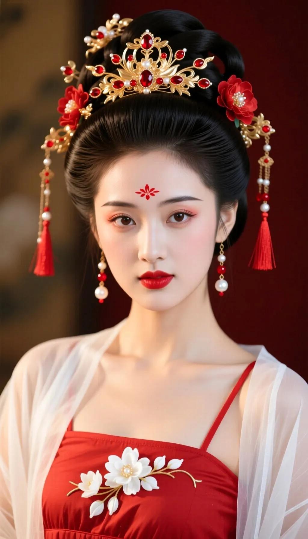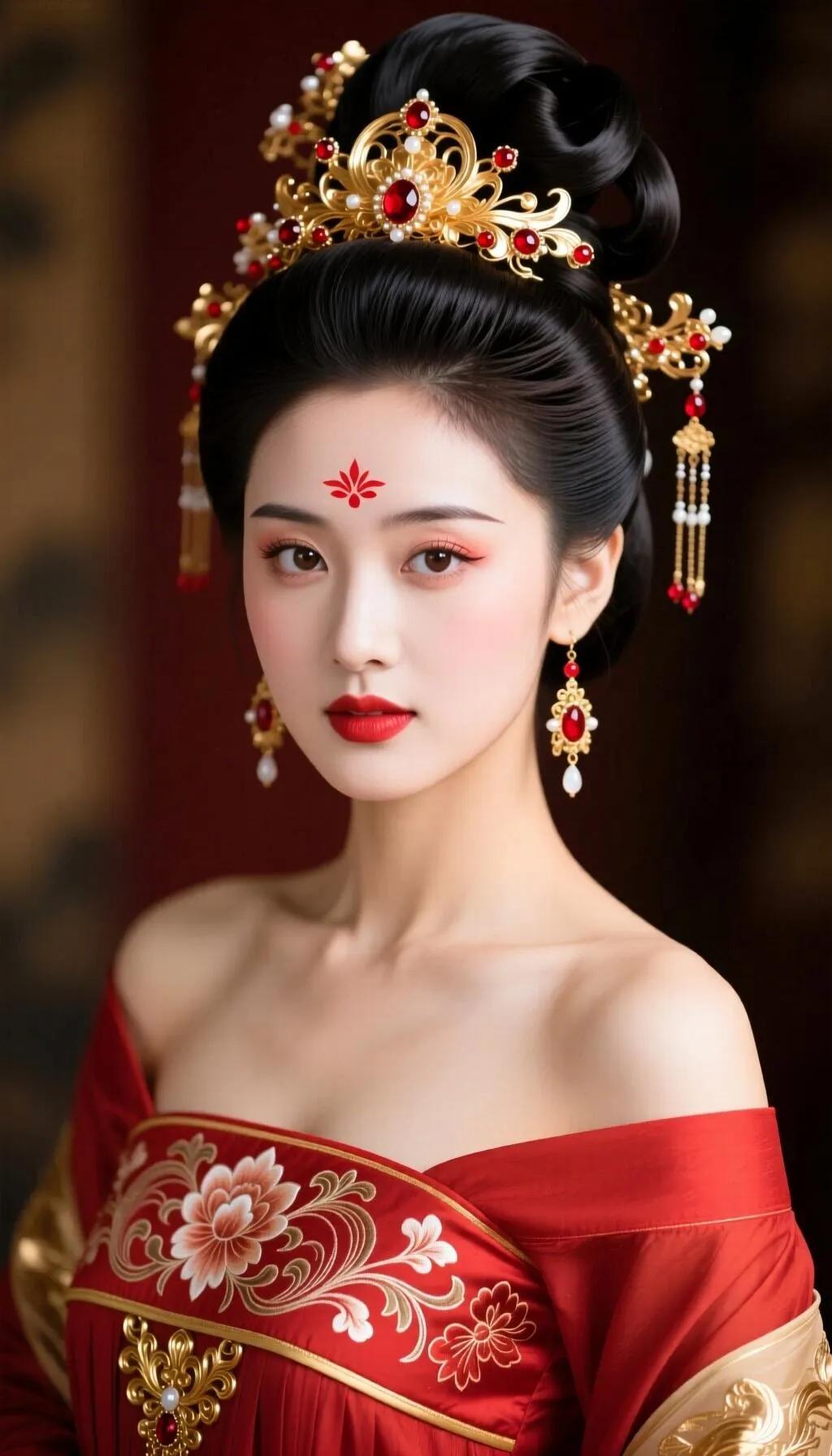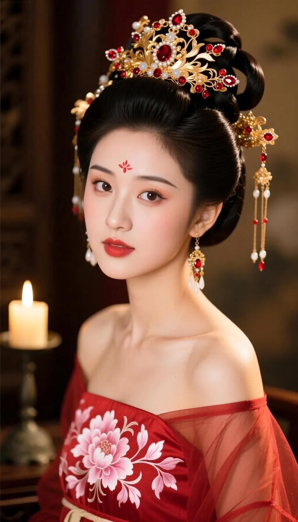古风美女手持粉色莲花,红衣华服,惊艳绝伦!