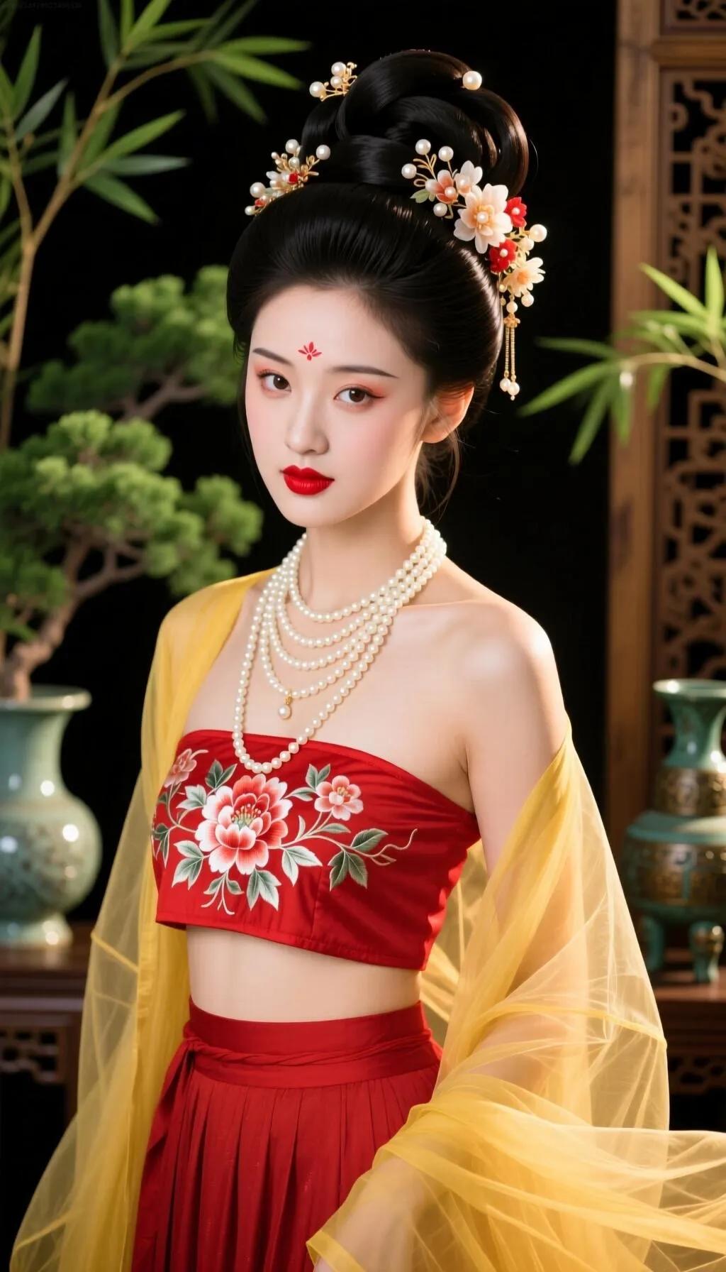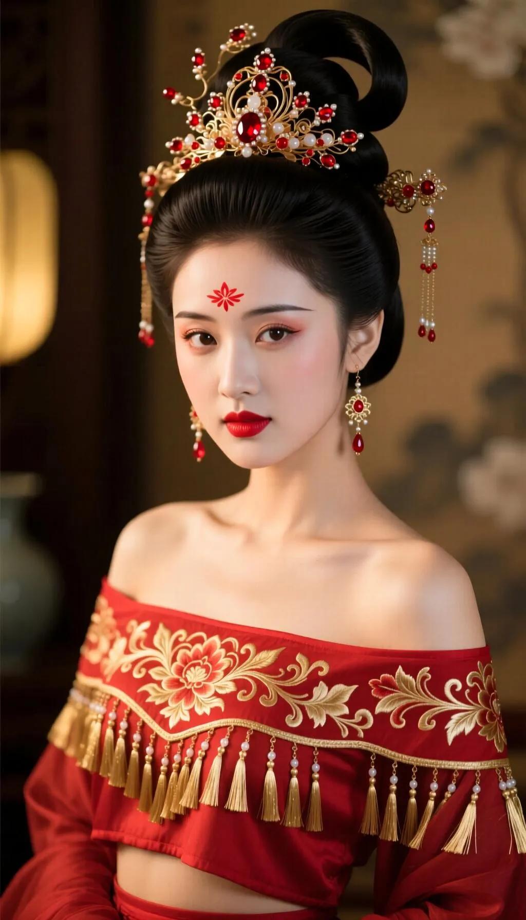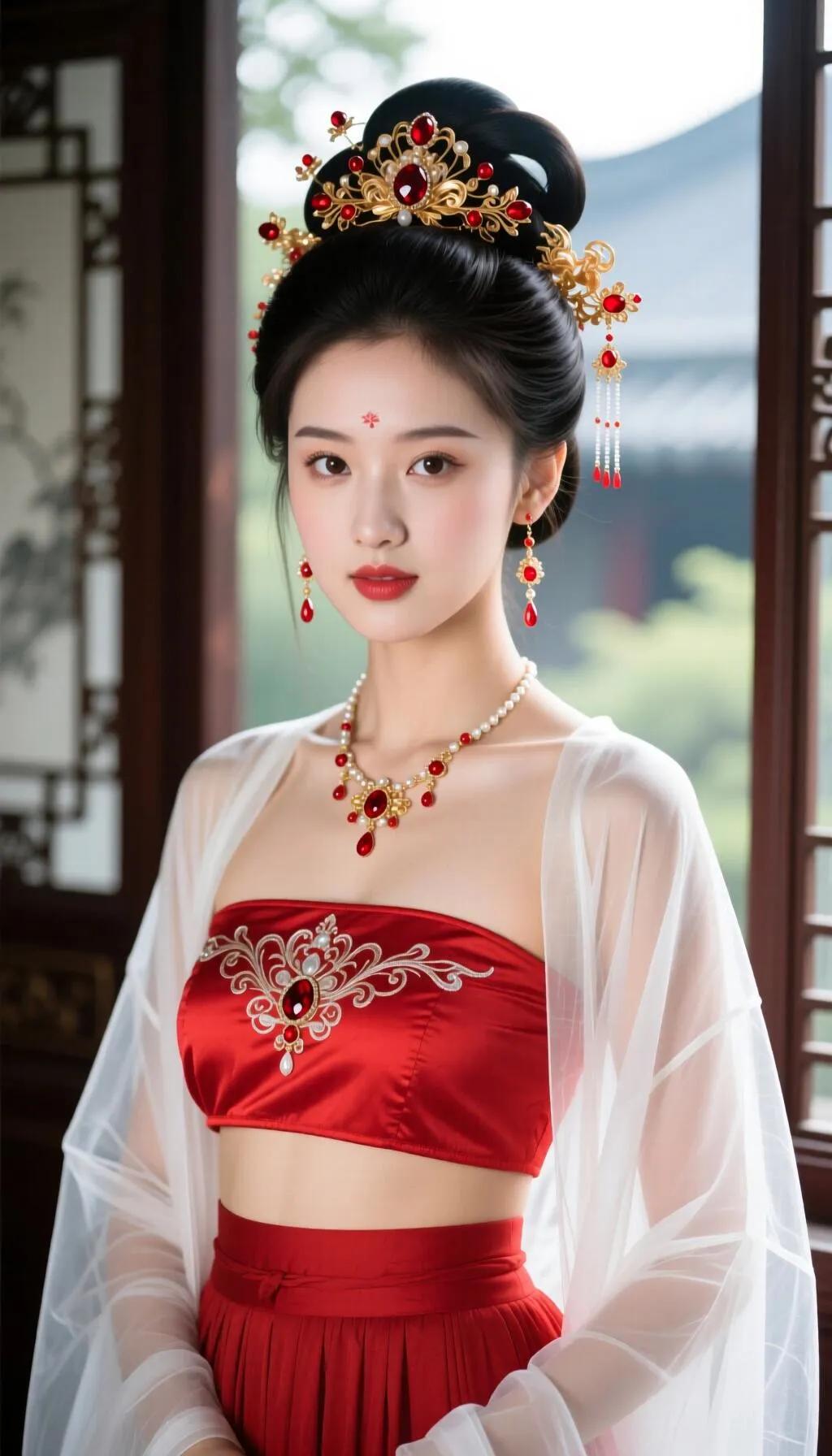 古风美女手持粉色莲花,红衣华服,惊艳绝伦!