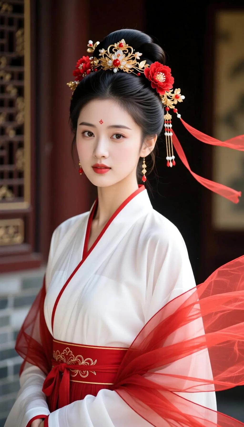 清透白皙的肌肤,搭配精致汉服造型,真的就像古代仙女下凡。小姐姐梳着双垂髻,发辫坠