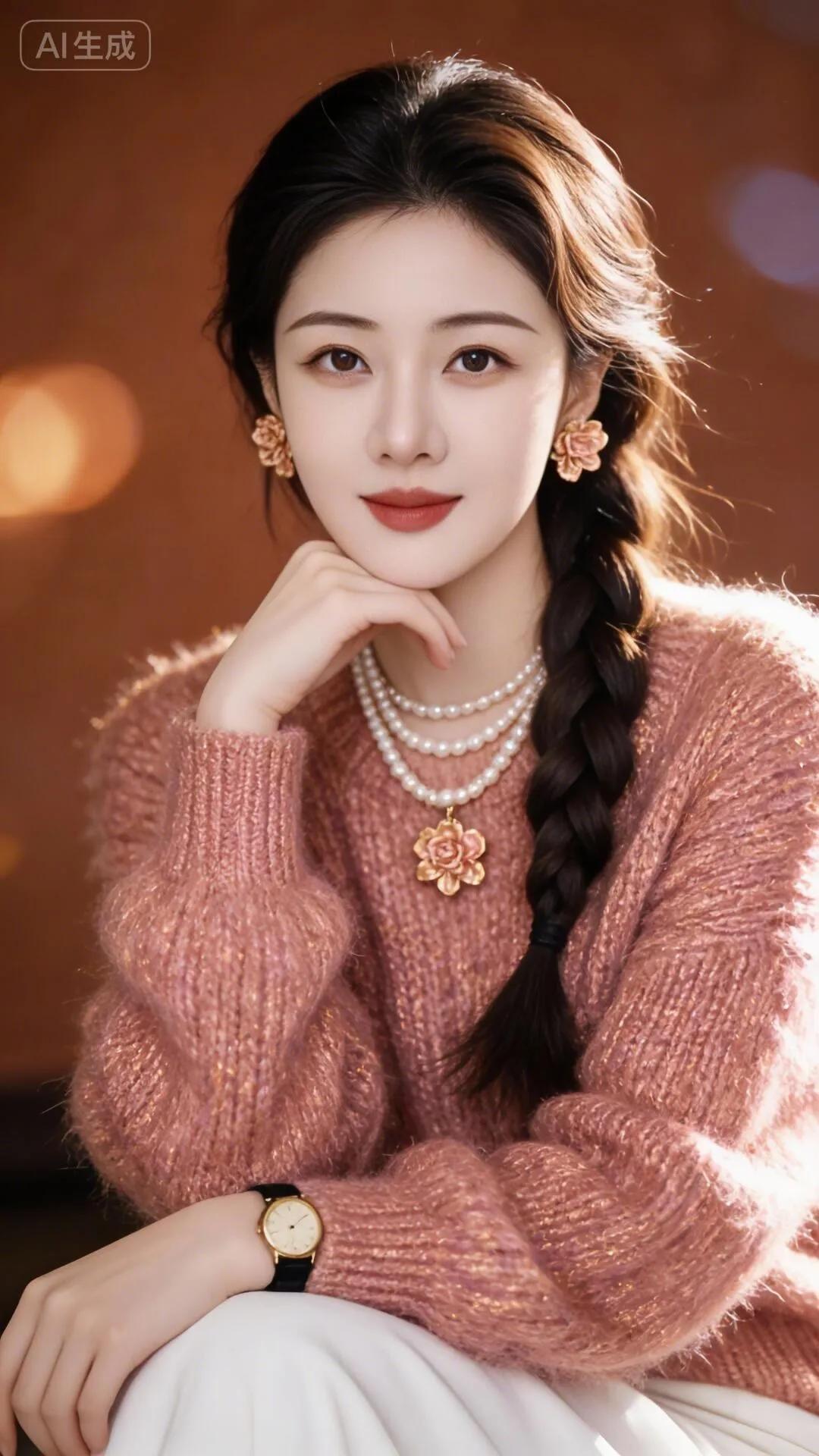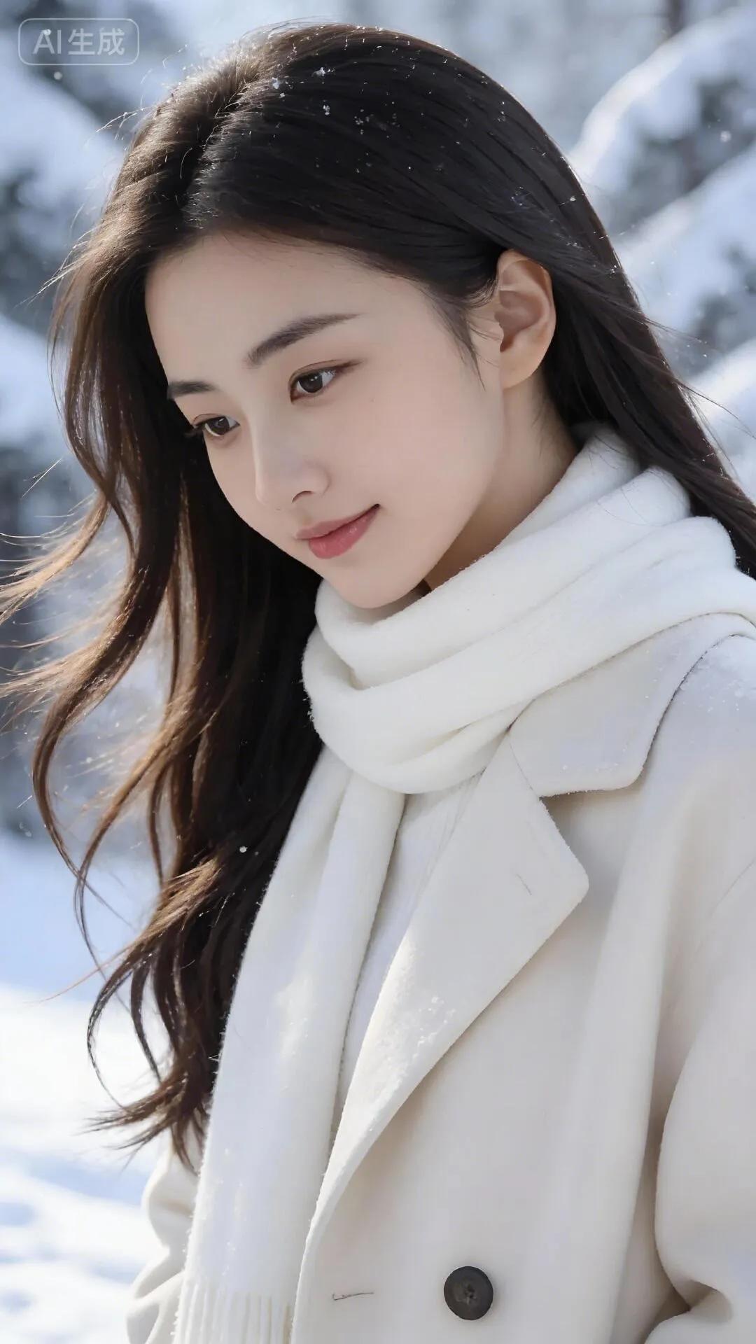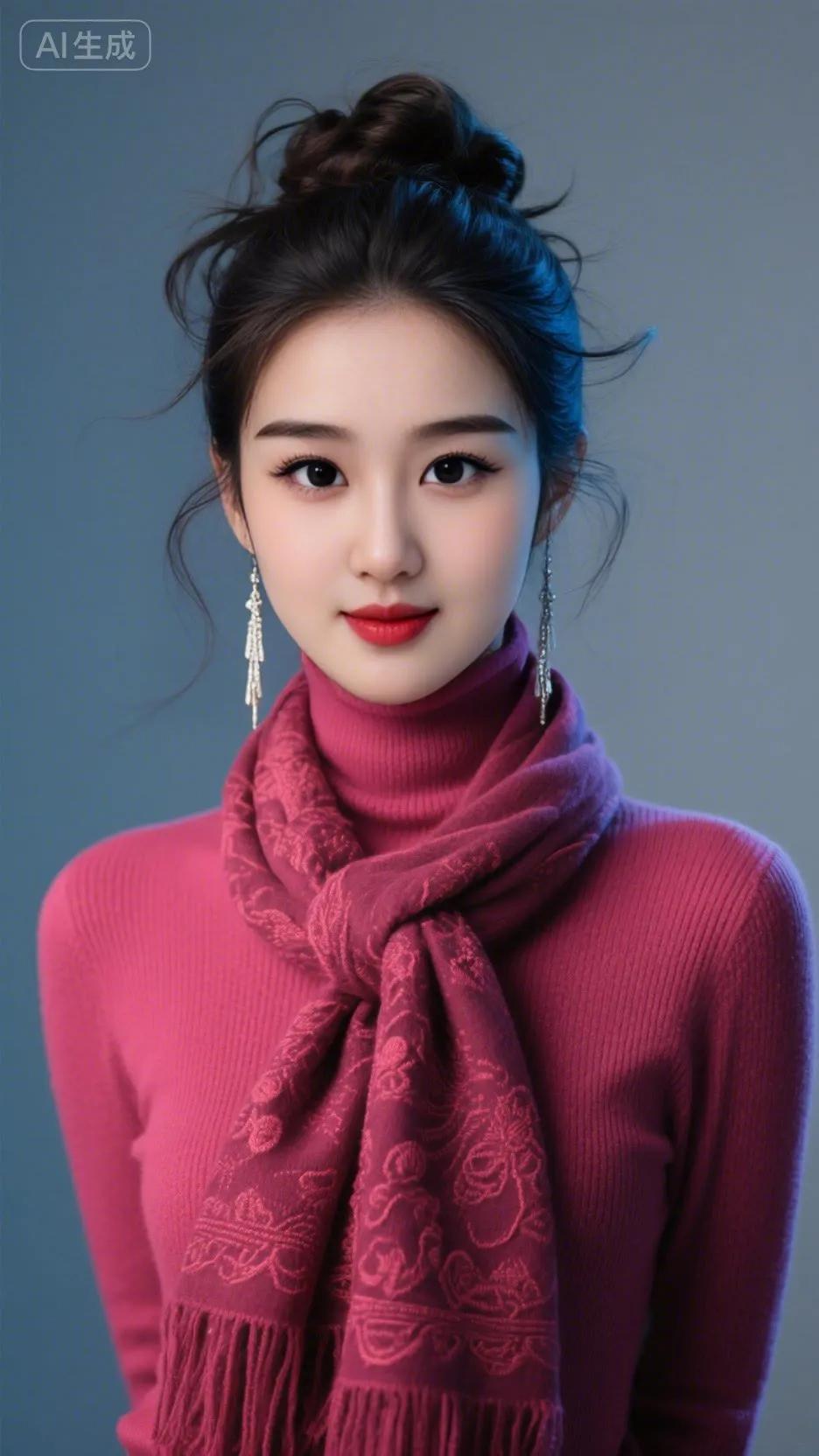 冬日暖阳下,温柔粉毛衣与白色围巾的完美搭配,尽显冬日温暖与甜美。