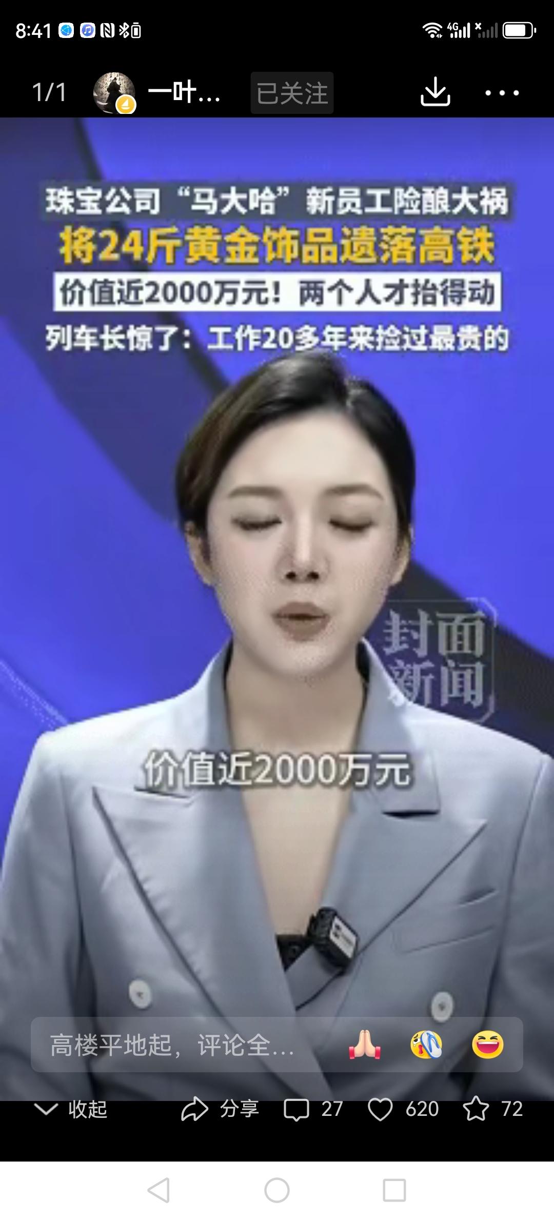 最近上海的高铁上,出现了一个装着天价物品的行李箱! 列车长在检查车厢时,在卧铺下面发现了一个分量特别沉的黑色箱子,两个工作人员费了好大力气才把它抬起来。 打开箱子后,里面竟然放着12包黄金首饰,算下来价值差不多有2000万! 1月26号一大早,D914次列车到了上海站。 等乘客都下得差不多了,列车长吴佳雯按规矩检查车厢,发现6号车厢有个特别沉的黑箱子。 警察也过来一起打开箱子,里面整整齐齐地放着12包黄金饰品。刚想联系失主,就接到了珠宝公司找这个箱子的消息。 失主急得不行,说这是要拿去参展的新首饰,要是按正常流程找,肯定会耽误摆展台。 铁路这边为了帮他,赶紧走了特殊流程,对着视频确认了箱子上的编号,这才把箱子交给他。 后来才知道,是个新来的员工不小心落下的,差点就造成大麻烦了。 网友们都在说:这新员工也太马虎了!还好遇到了负责的列车长。 两千万的黄金说丢就丢,这珠宝公司的管理也太让人担心了吧? 但铁路部门处理得又快又规范,必须给铁路的“熊猫速度”点个赞! 大家出差的时候会仔细检查行李吗?要是遇到这么贵重的东西,换作是你,敢一个人带着到处跑吗? -search.byteimg.com/img/labis/52b8c1afb9d96b05e2d4776555dd80a4~480x480.JPEG高铁行李箱 高铁丢物品 高铁站行李箱 动车贵重物品 高铁丢行李箱 高铁遗失物 高档出差行李箱