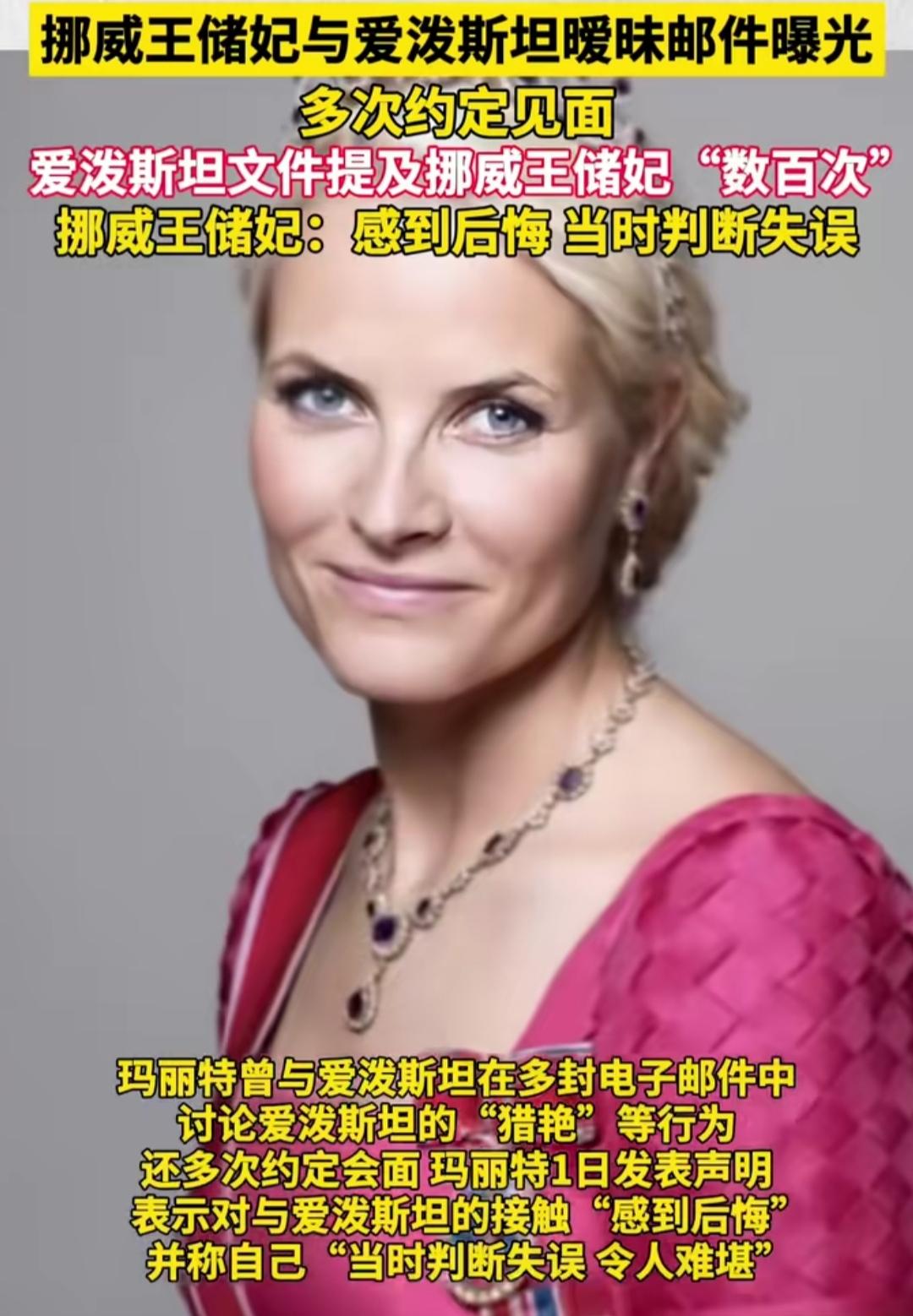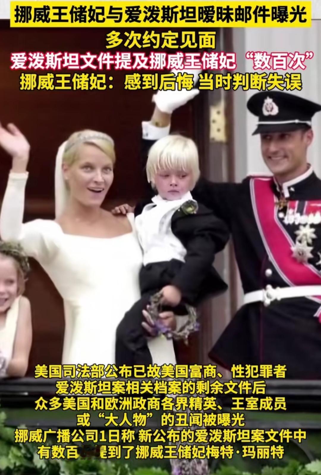 谁能想到,曾让无数人磕过的北欧王室灰姑娘童话,如今竟被一封封尘封的邮件撕开了口子。那个从平民逆袭成王储妃的女人,背后藏着的过往,比偶像剧的剧情还要跌宕。 爱泼斯坦案解密的350万页文件里,挪威王储妃梅特的名字被提超千次,2011到2014年的邮件往来满是暧昧,一句“你挠到我的大脑”,道尽了这段往来的不一般,甚至还聊过巴黎婚外情的话题。 更让人意外的是,她早就谷歌过爱泼斯坦,明知对方口碑不佳,却依旧保持联系,还曾在其佛州涉案豪宅住了四天。如今面对曝光,她只说后悔和判断失误,可字里行间的遗憾,难掩舆论的哗然。 偏偏此时,她的儿子又因多项罪名出庭受审,母亲的陈年过往撞上儿子的现案,挪威王室的亲民形象瞬间摇摇欲坠。这场看似个人的判断失误,终究让童话蒙上了一层难以抹去的阴影。