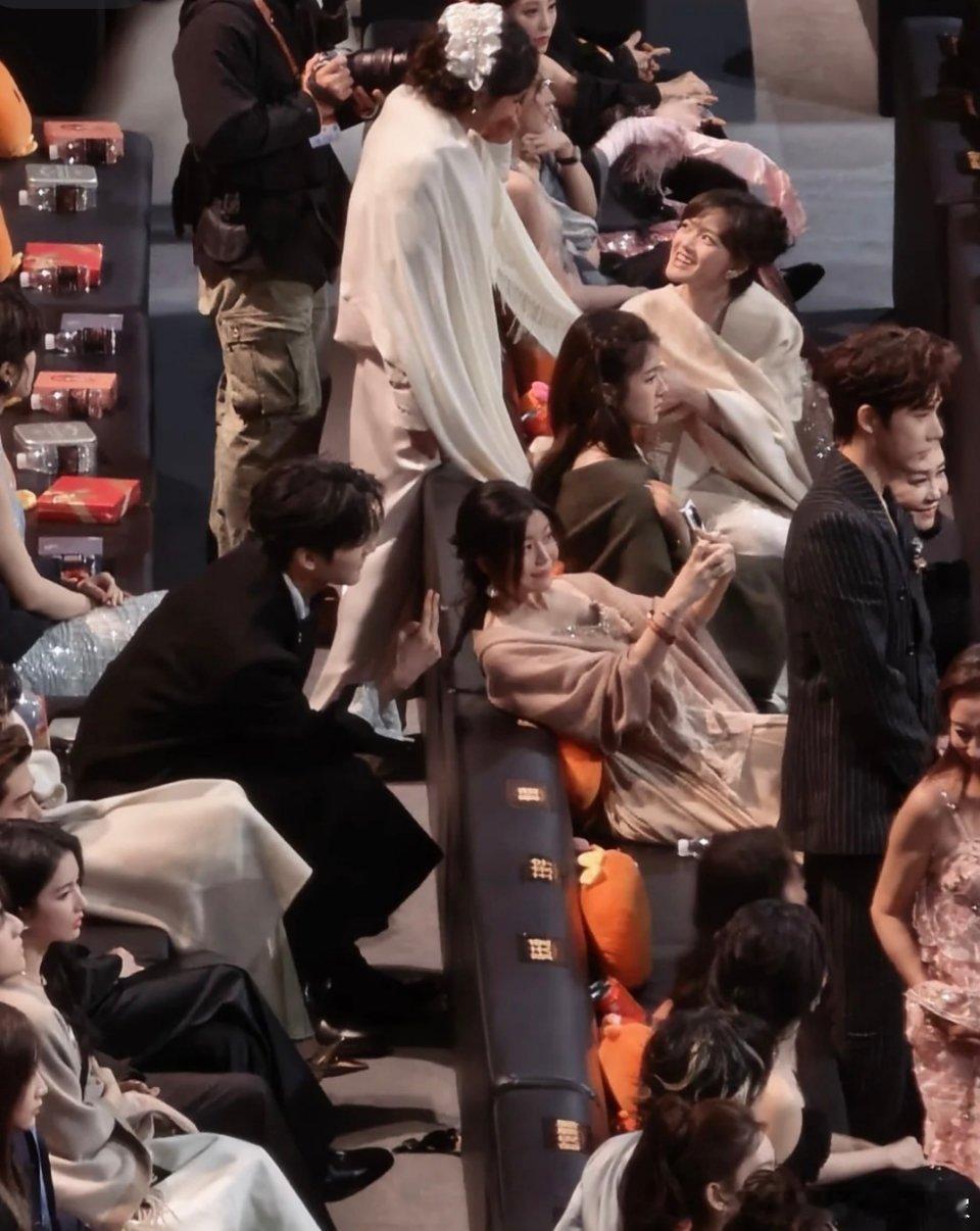 他俩一看就是很熟了,周柯宇真的没有把陈妍希当成前辈,就是朋友之间相处的感觉,所以他说觉得和姐姐是同龄人甚至妹妹,应该是真心的。我看后面有一个姐姐一直在拍她俩,甚至台下欢呼的时候,她俩也在欢呼,剧粉今晚开心到爆.炸啊~~陈妍希发言导播切了周柯宇陈妍希周柯宇牵手