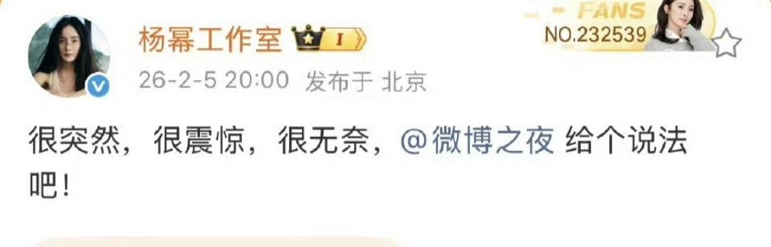 微博之夜每年必演的“座位大战”又双叒叕来了! 刚刷到杨幂工作室发文“很突然,很