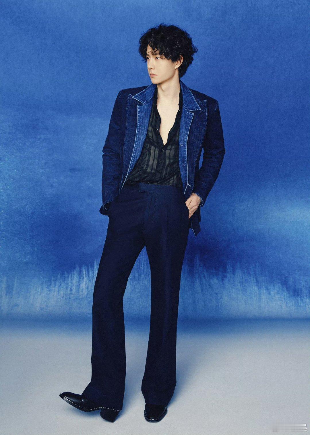 王一博靛蓝牛仔西装王一博微博之夜第二套Look直接上身TOM FORD 靛蓝牛仔