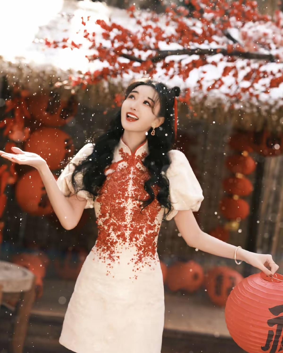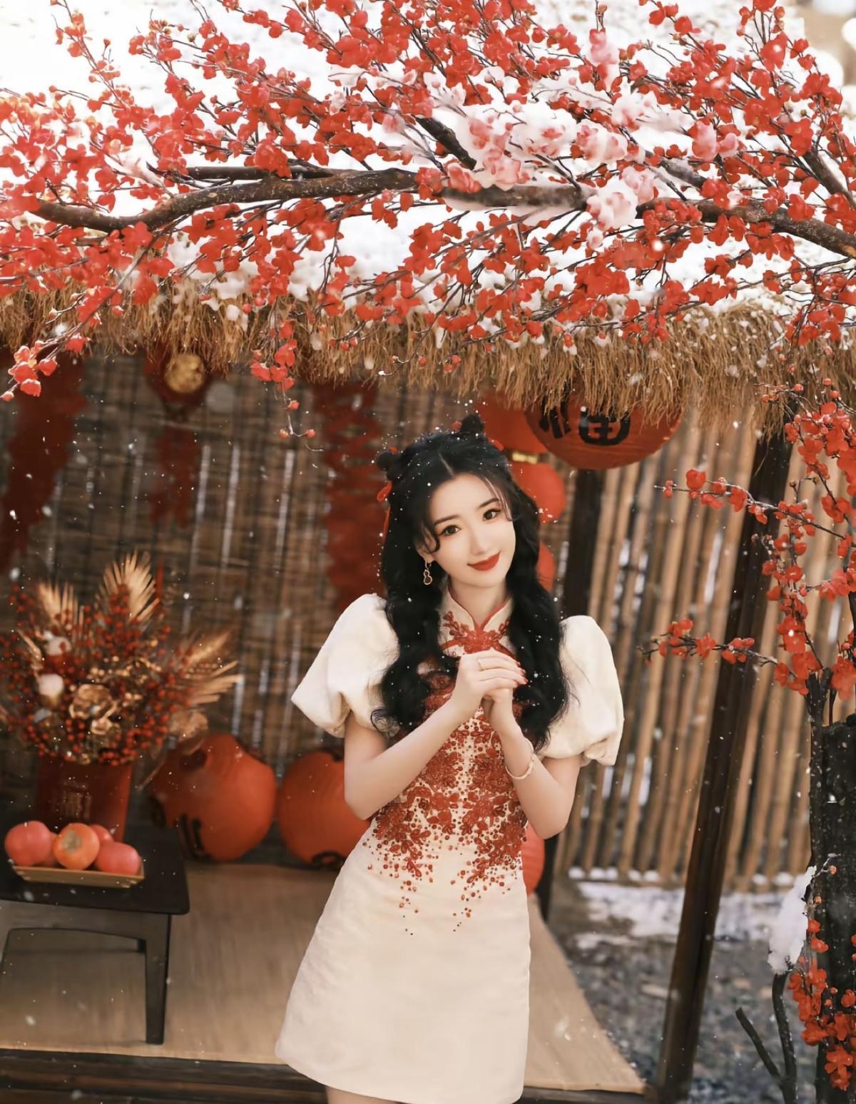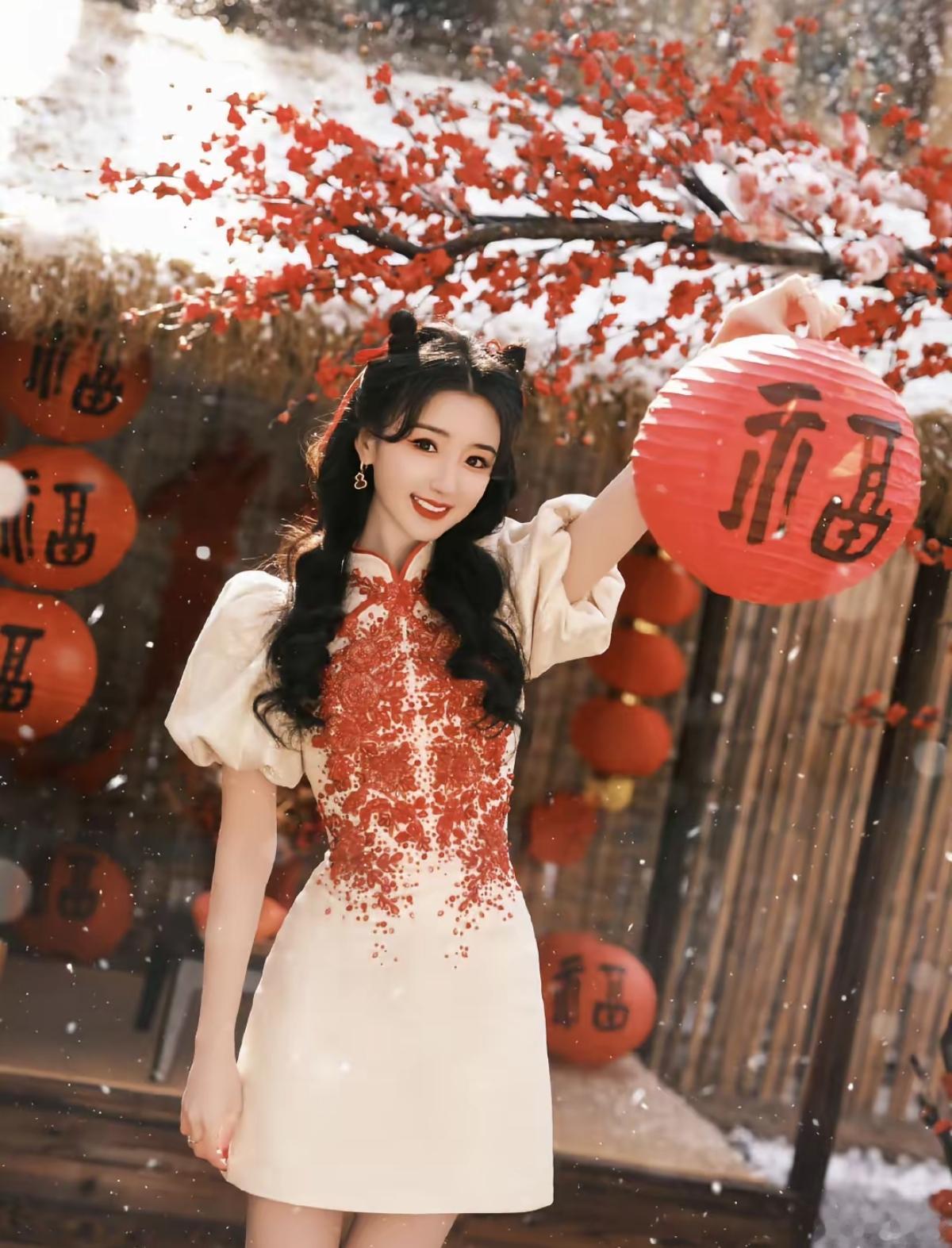 红梅覆雪,福灯高悬🏮 毛晓彤 身着新中式旗袍[比心] 把吉祥娃娃的甜美元气[加