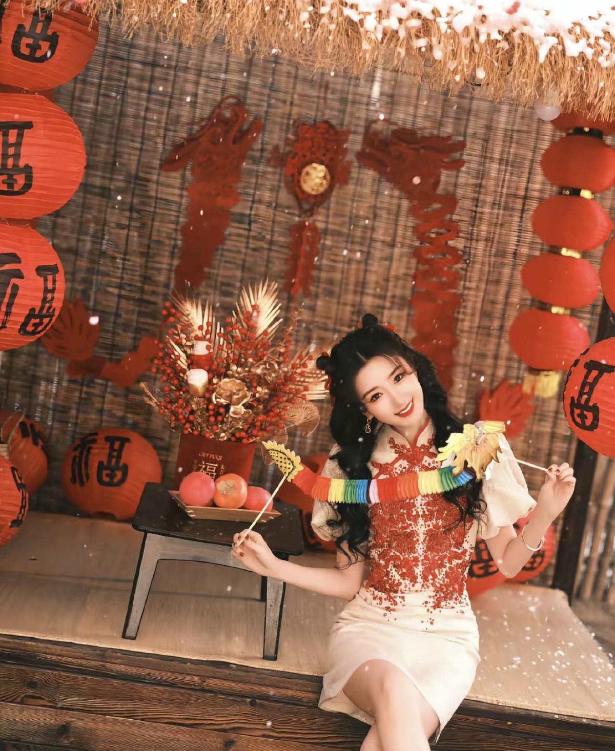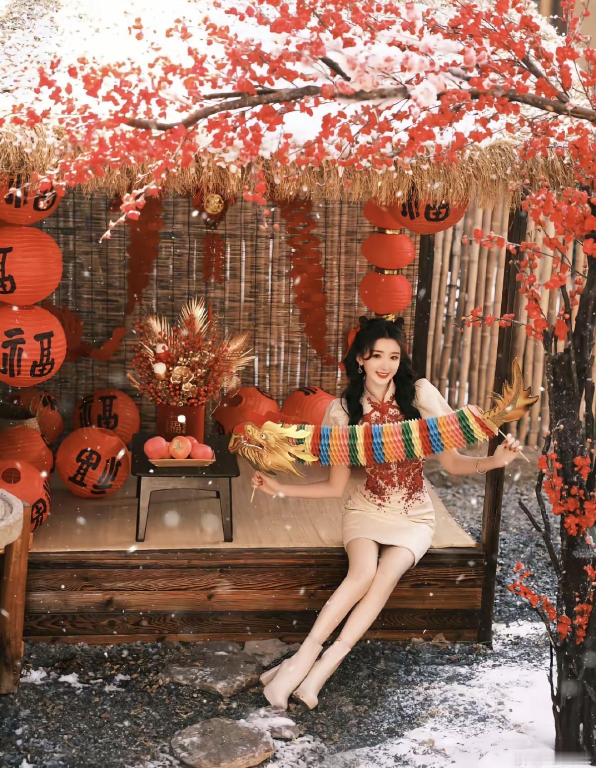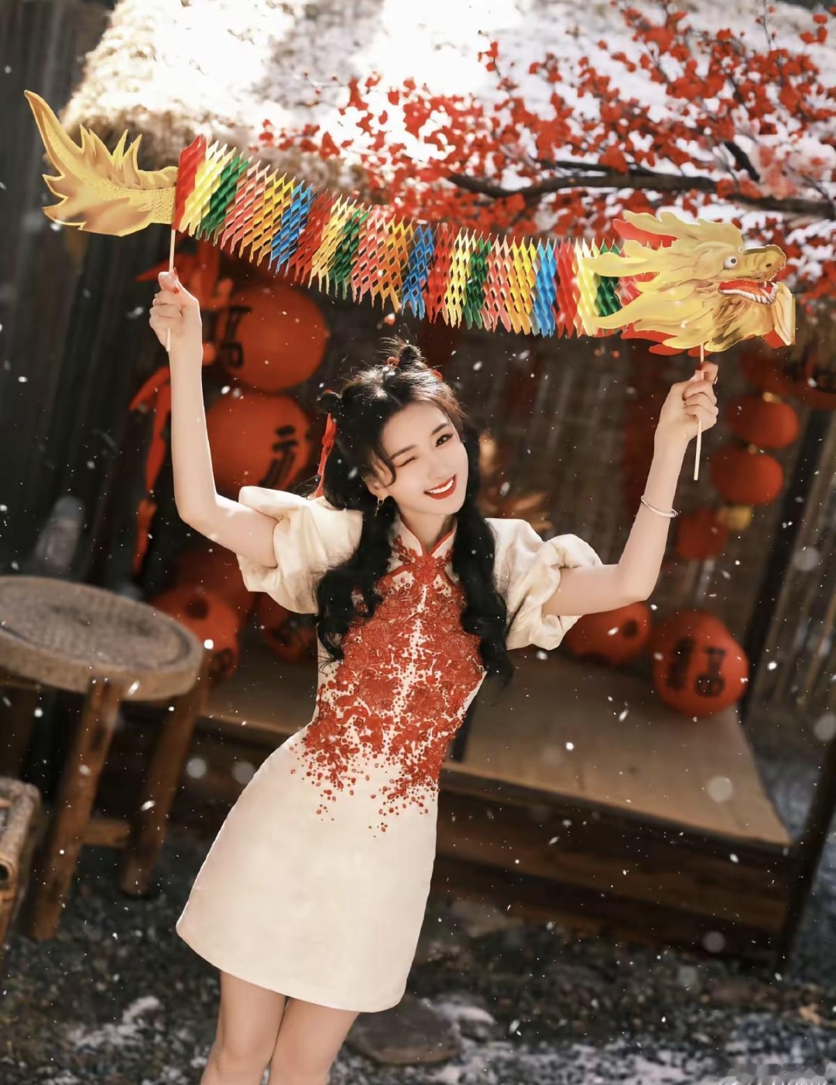 红梅覆雪,福灯高悬🏮 毛晓彤 身着新中式旗袍[比心] 把吉祥娃娃的甜美元气[加
