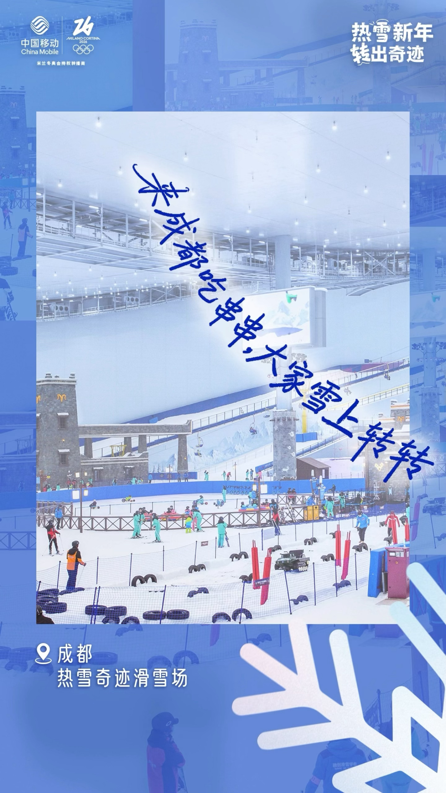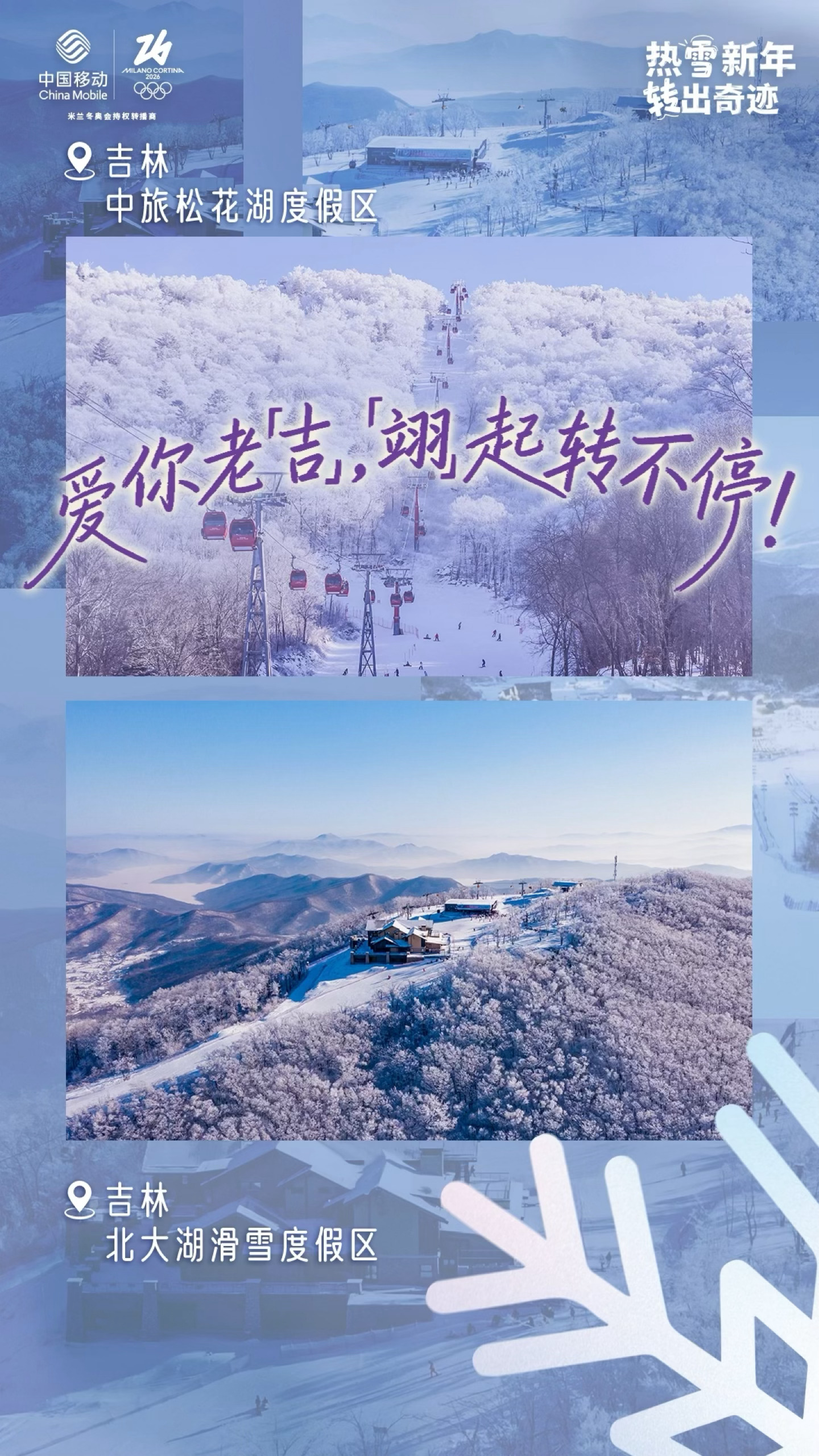 ❄热雪新年,全国齐「转」!#咪咕开年带你雪转一下##热雪新年翊起转#⛄这个冬天,咪咕视频携冰雪热血席卷南北,以雪为媒,每一处都有独特的“雪转”风景。✨热雪交织,好运成环,咪咕“雪转”打卡装置活动今日开启!北京、吉林、河北张家口、西安、武汉、广州、成都、深圳、昆明、哈尔滨、石家庄、无锡、苏州、重庆,全国14城雪场等你来“转”出新年好运!锁定