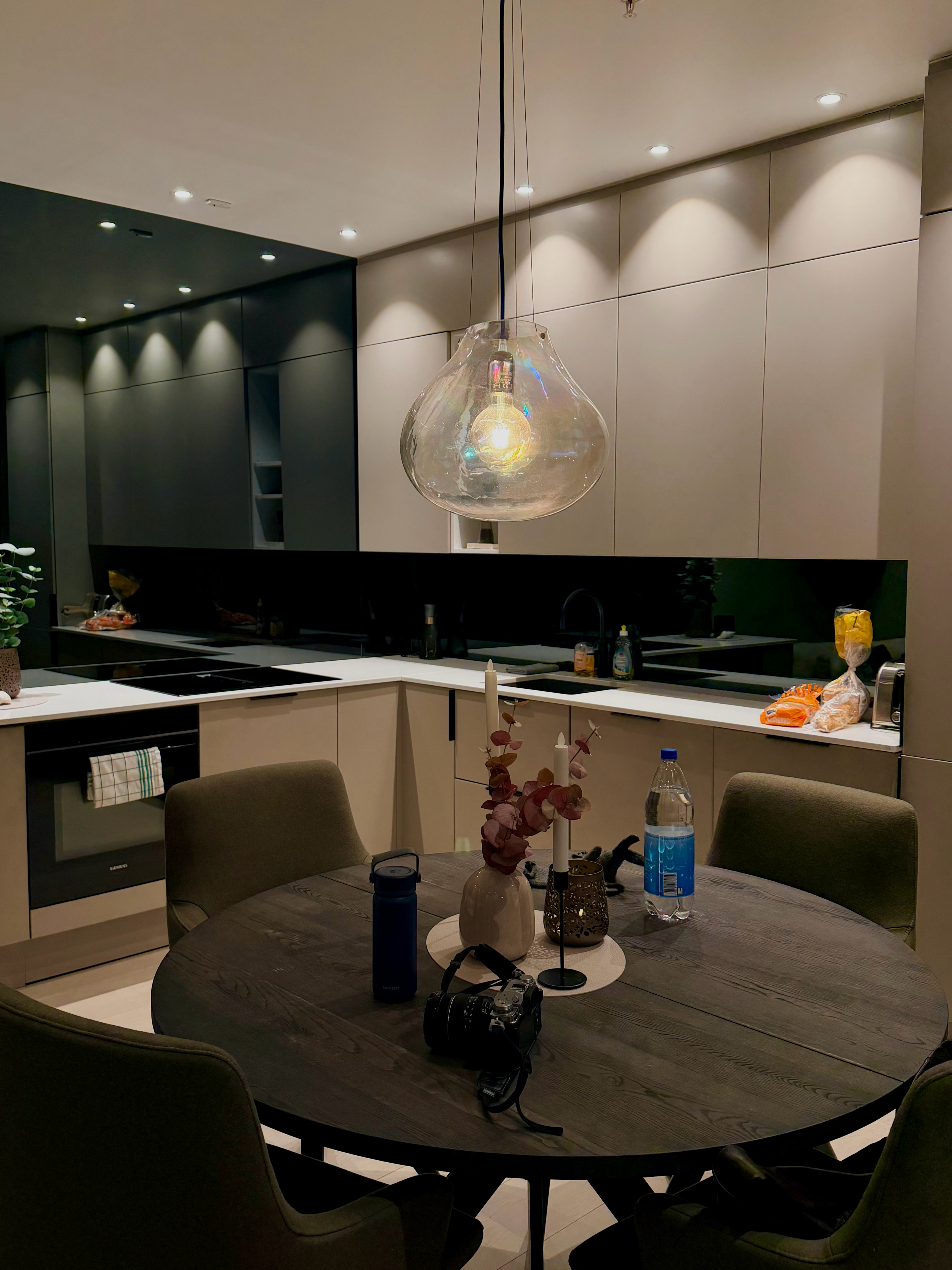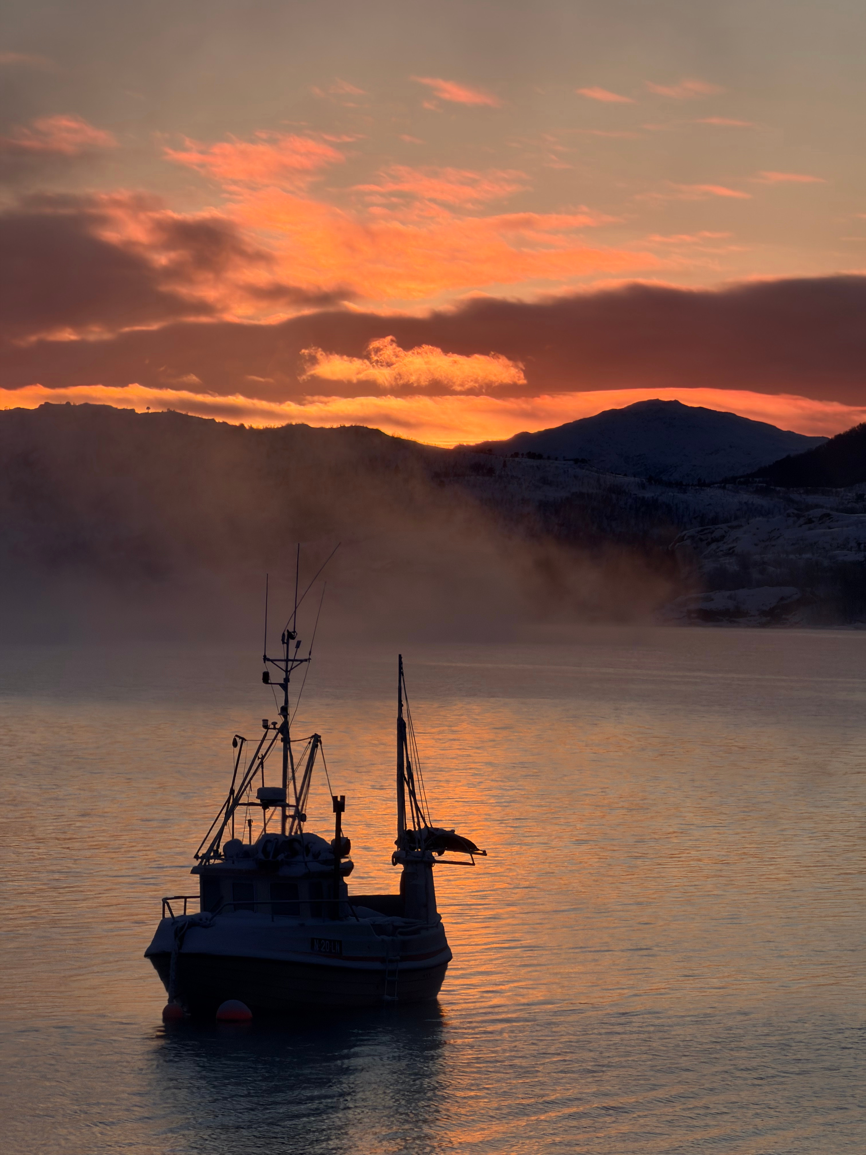 好天气在冬天的挪威并不常见,所以真的好幸运呀!日出日落,朝朝暮暮🧡这里的日照特别珍贵,所以几乎每家每户都有很大的落地窗,而我总被他们家里点亮的灯吸引💡来了以后终于吃到了一顿好吃的{鱼汤}🐟