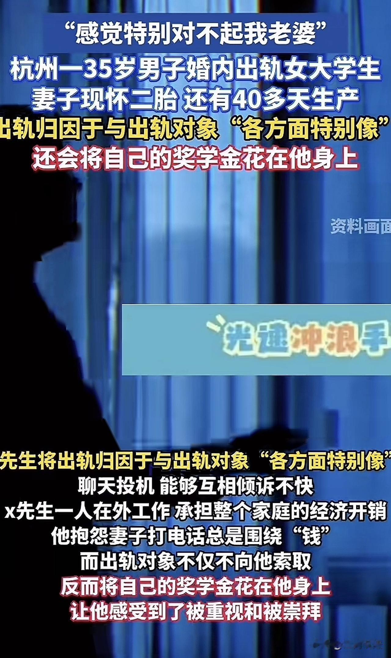 “太狗血!”浙江,一35岁男子趁妻子怀二胎,在网上认识一20岁女大学生,两人线下
