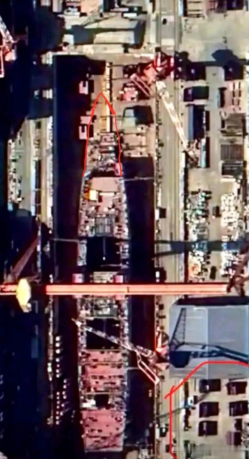 Ai又给修复了一下。按黄色墩子的话,这水线得奔着330去了啊【图片】 这下看清楚了,舰尾也是收窄的,舰首不会离船坞尽头很远,这船应该是前后居中的,没必要特别靠后,这样算下来应该330多米,只要超过福特的317就满足,省的有人总想短两米非得比福特短一丢丢在排水量上硬找补。