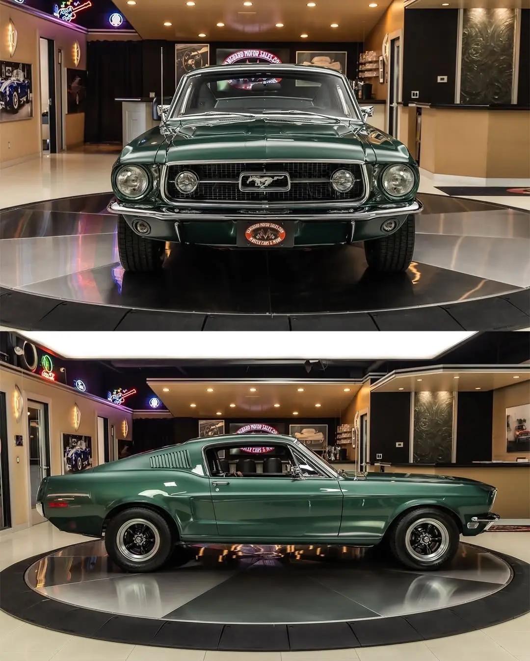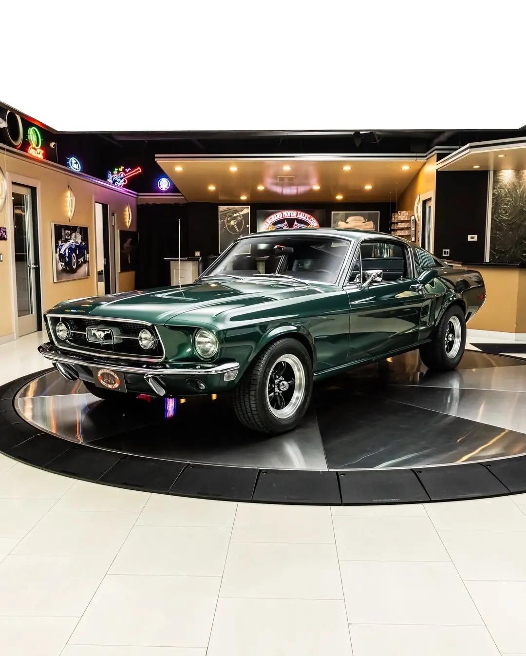1968 Ford Mustang Fastback — 当经典遇见电影传奇,这台被后世称为“Bullitt”的肌肉车,不只是速度的符号,更是时代的影像。原厂以390立方英寸(约6.4L)V8为核心动力,最大功率约320马力,0–100 km/h 约6.5秒,整备质量约1.4–1.6吨,极限巡航可达约210 km/h;1968年款以紧凑有力的车身比例与低趴姿态回应那个年代对自由与反叛的渴望。所谓“Bullitt Rotisserie”,是对这段历史的尊重:车身整车下架挂上翻转架(rotisserie),从底盘到车顶进行裸金属级别的修复与还原,钣金、焊接、涂装、内饰与动力系统逐项回溯到电影质感与工程标准之间的平衡。成品既保留原汁原味的粗犷动力学,又在细节处体现现代工艺的耐久与美感。福特野马 文化 男人爱车 经典老车 汽车
