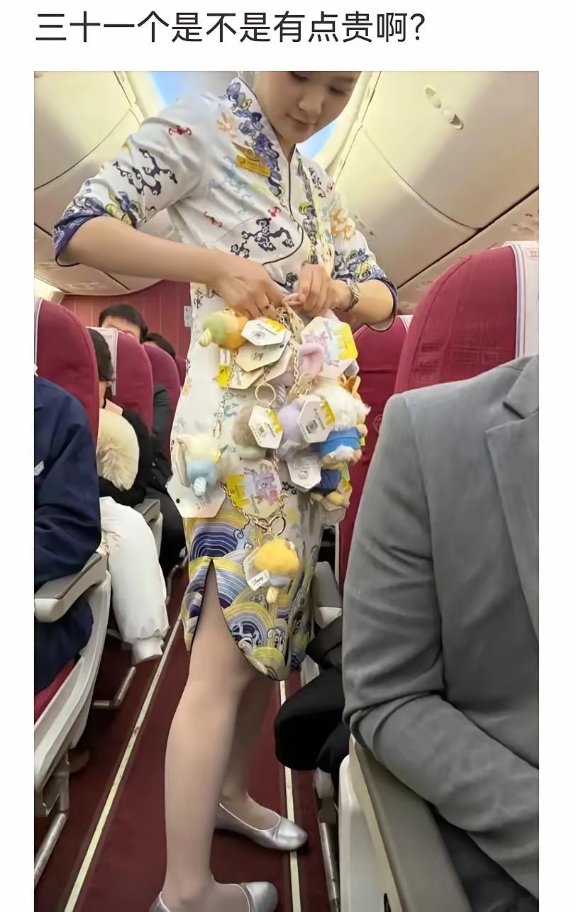 这位空姐没有研究透生意经,不用自己费劲巴力的摘卖掉的公仔。如果让客人付款后,自己去摘公仔的,客人肯定心花怒放,必定会大卖。 有人担心手机飞行模式不能付款。卖家没有买家急。告诉你吧,支付宝有离线支付功能,秒闪,很方便的。 天津航空的飞机上✈️,空姐兜卖的是熊猫玩偶。 憨憨的熊猫,吸引了一帮熊孩子,吵吵闹闹的。 几个熊孩子买了之后喊叫 吵的头疼欲裂 家长没给买的声音更大。 旅客的头都大了。不过,也挺喜庆的。