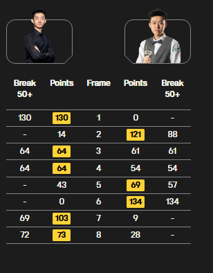 1/4决赛,吴宜泽将迎战张安达。后者以5-3淘汰了巴里-霍金斯。
