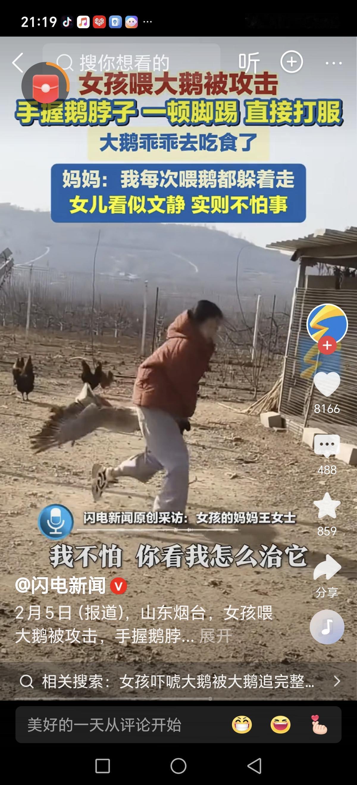 这是一段令人振奋的故事,展现了孩子的勇气和坚韧,也让人感受到动物与人之间意想不到的互动。 事件发生在2月3日,地点是烟台栖霞市。叶女士在视频中分享了女儿喂养家中宠物狮头鹅的趣事。原来,这只大鹅是几年前父亲买来作为宠物的,平时女儿在家时会负责喂食,而女儿住校期间则由她自己照料。有一次,大鹅突然变得有些“脾气”,被叨了一下后,非常疼,显得有些“难相处”。 这次女儿放假回家,叶女士便让她去喂这只“调皮”的大鹅。令人惊讶的是,面对大鹅的“攻击”,年仅13岁的女儿没有退缩,而是奋起反击。她毫不畏惧,一脚踢在大鹅身上,果断又有力,终于成功“制服”了这只狮头鹅。 最终,大鹅被“打服”,也不再继续“欺负”女儿。整个过程展现出女儿的勇敢与果断,也让人感受到在面对动物时,既要尊重它们,也要懂得用智慧和勇气保护自己。这段趣事不仅让人会心一笑,也提醒我们,勇敢面对挑战,才能赢得最终的胜利。动物温情故事