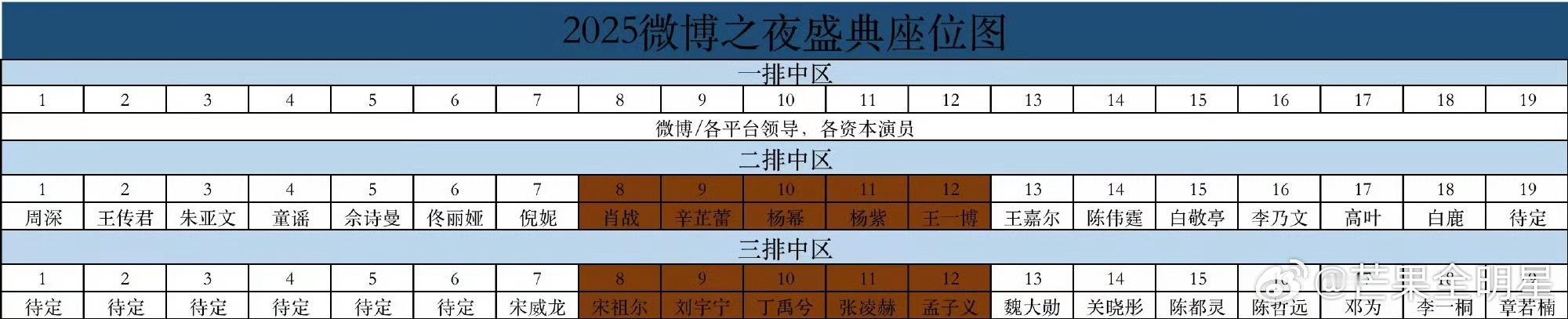 微博之夜内场座位杨幂工作室下场发言,内涵换座位的事,还波及到了旁边座位的肖战和后排一众明星,所以换来换去,最后又换回最初的样子了?