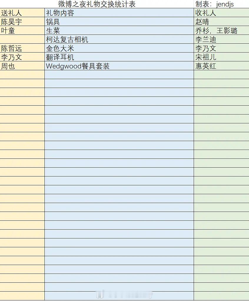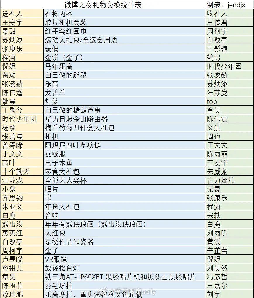 今年微博之夜礼物表