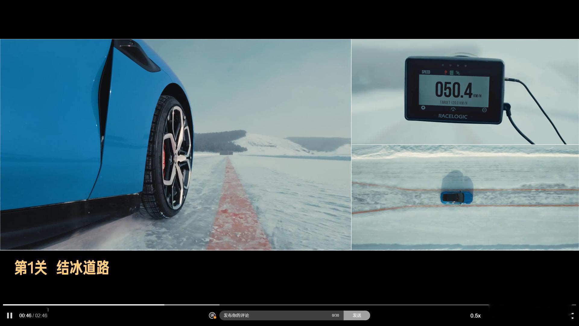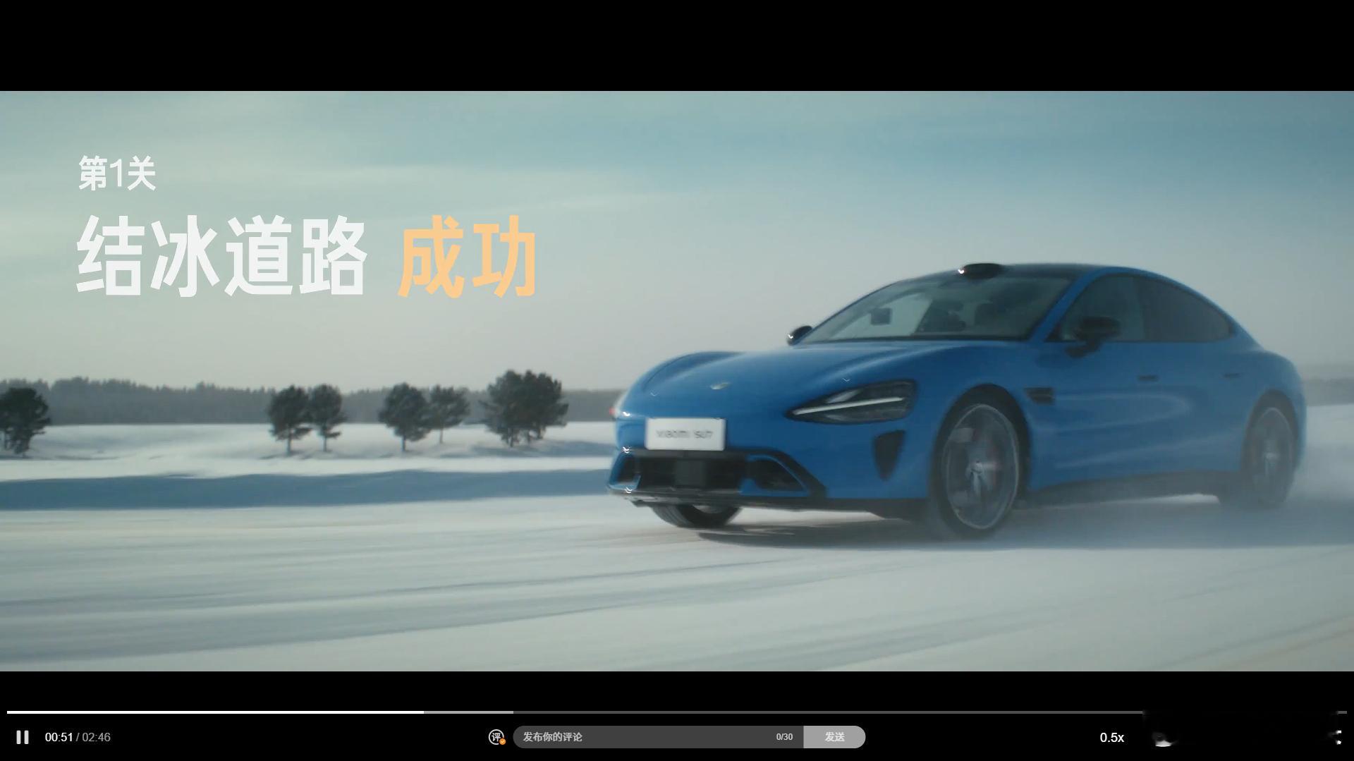 比如小米SU7的那条冰雪测试视频,其中就有多个片段式可以看出胎纹,因为加装了高速摄像机(图一)。