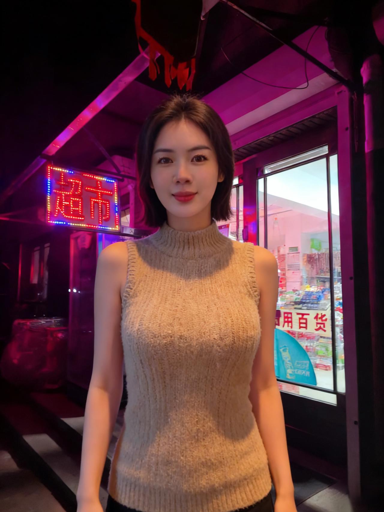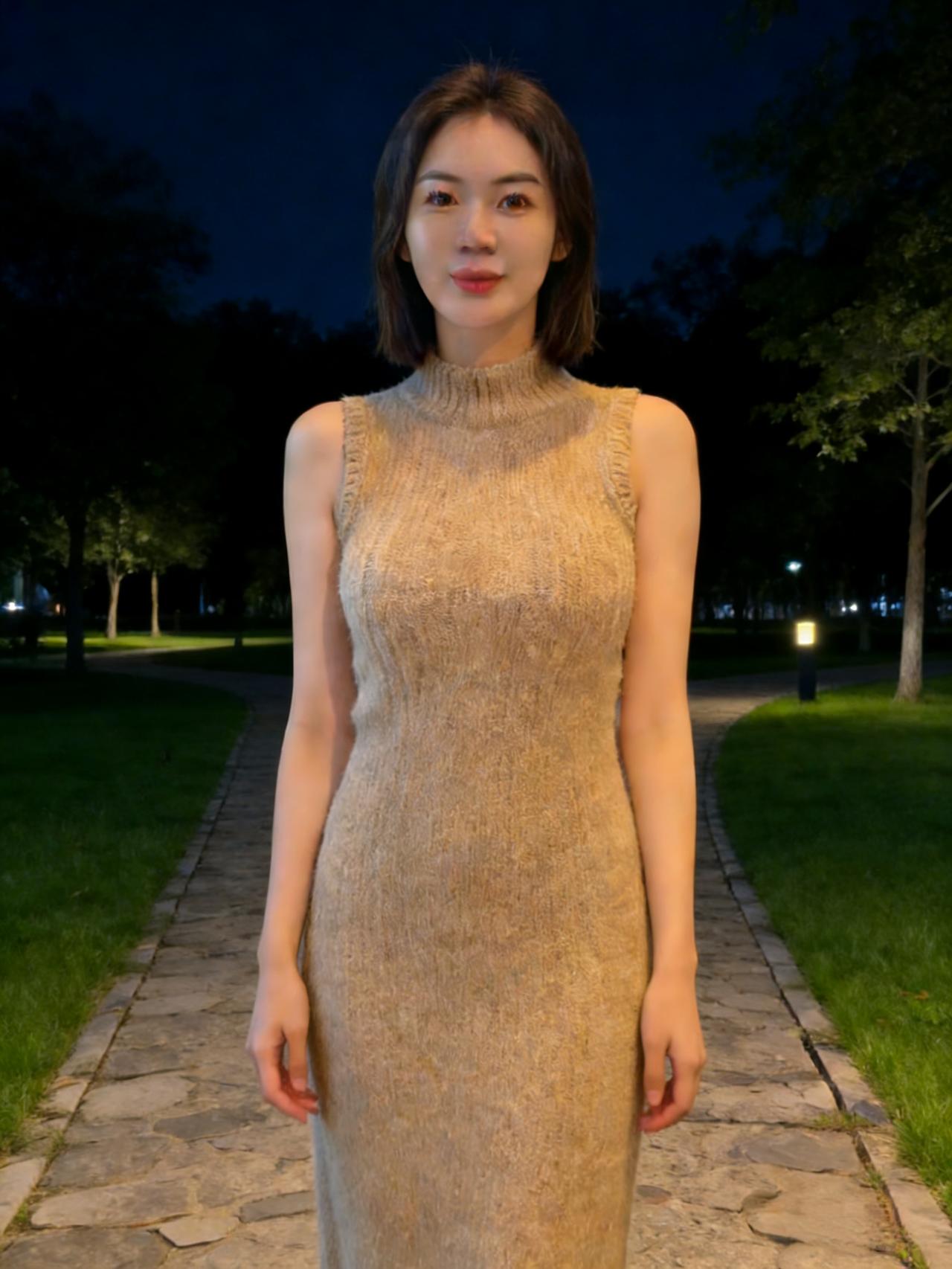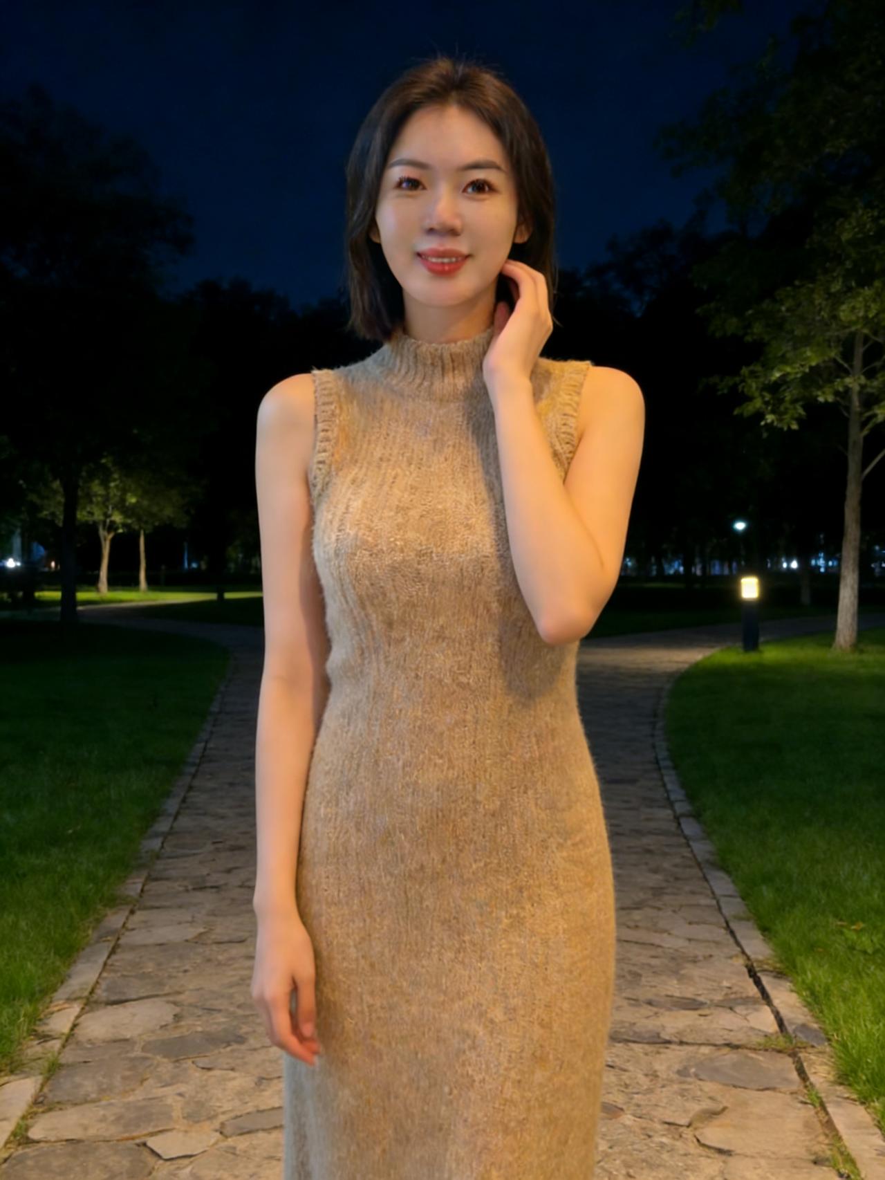 路灯把影子缝在针织裙上 每一针都是暖黄的星芒 你走过的石板路,青苔在暗处发亮 像冬夜未眠的心跳,轻轻摇晃 ~ 风掠过领口,带起细碎的绒线 与银杏叶的金黄在半空纠缠 你抬手拂发的弧度里 藏着整座城市的柔软 ~ 便利店的霓虹洇开紫色的雾 玻璃门后,热饮冒着白色的浪漫 而你站在光与影的交界 成为夜色最温柔的落款 ~ 当脚步碾过落叶的私语 当呼吸在冷空气里凝结成霜 你的微笑是不熄的灯盏 让夜的荒凉,长出滚烫的晴朗