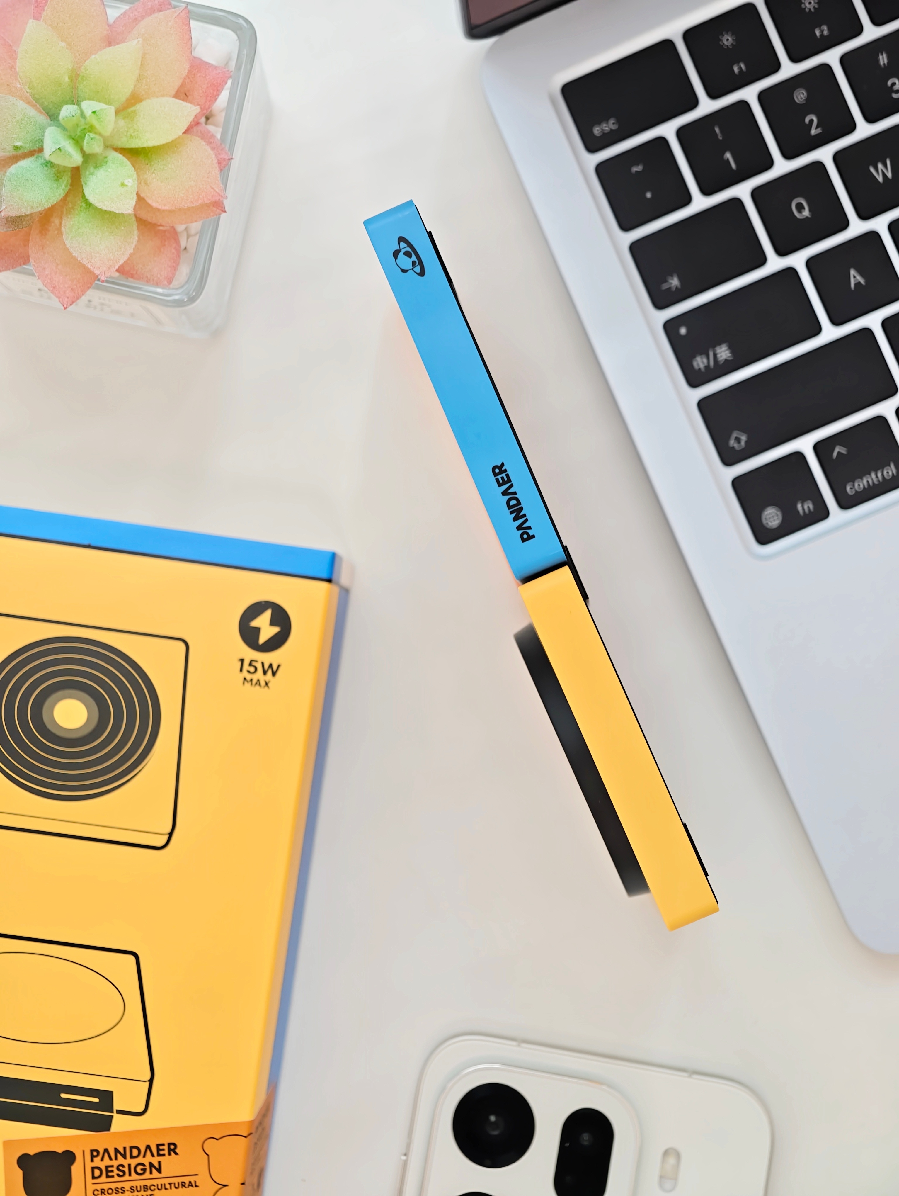 特别版的撞色设计比常规白色款更好看一些,而且磁吸白色部分也升级了陶瓷材质,质感更好。可躺可立,适配各种不同的充电形态,横屏充电还能激活iOS的充电待机动画。平时办公时放旁边就挺酷的。