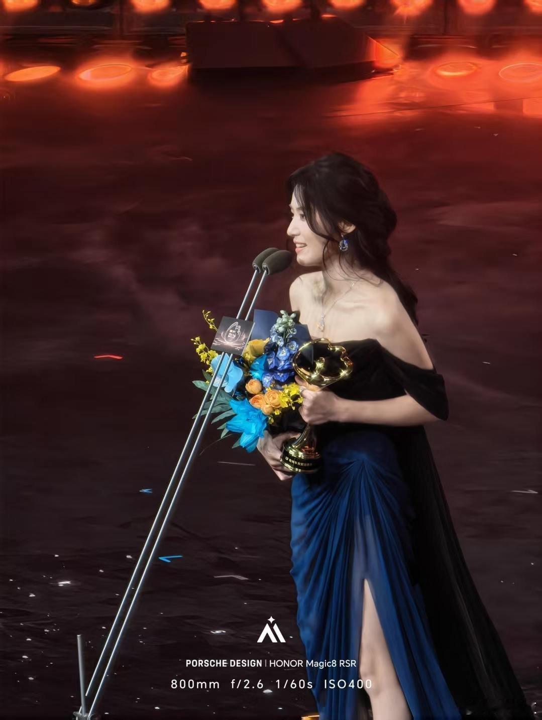 今天微博之夜 真的巨星云集,荣耀Magic8RSR保时捷拍出来的效果真的很惊喜,发丝和裙摆的细节都扑捉到了。