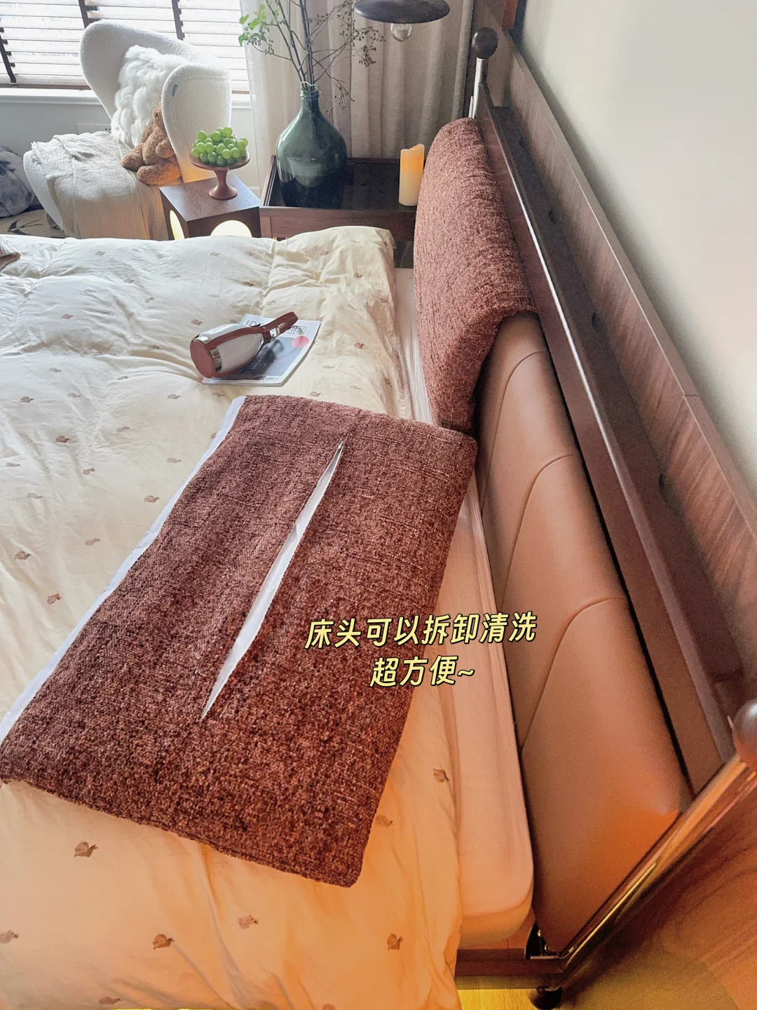 • 双风格可换:一张床配了两种靠背!云锦棕的温柔治愈,条纹款的清爽复古,想换风格随时都能换,给卧室新鲜感。