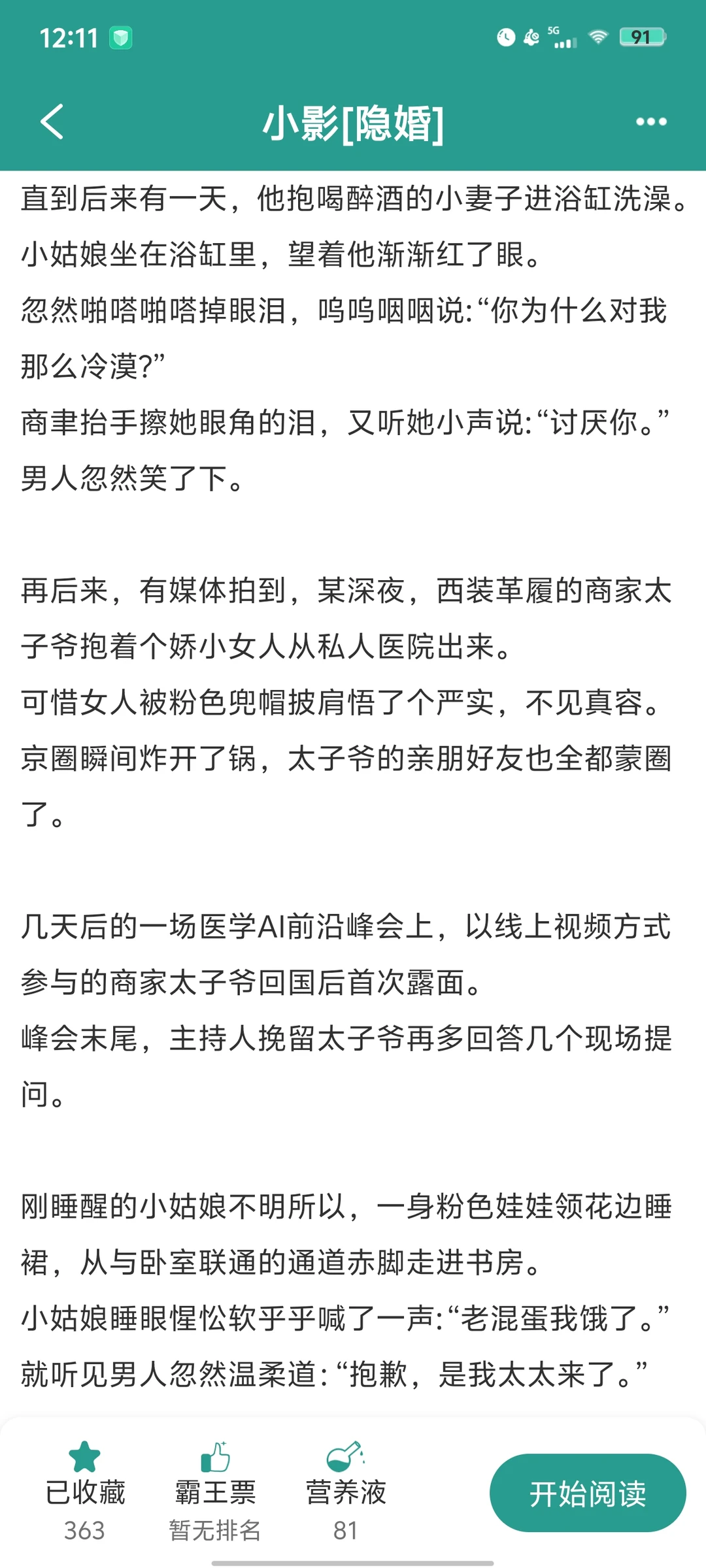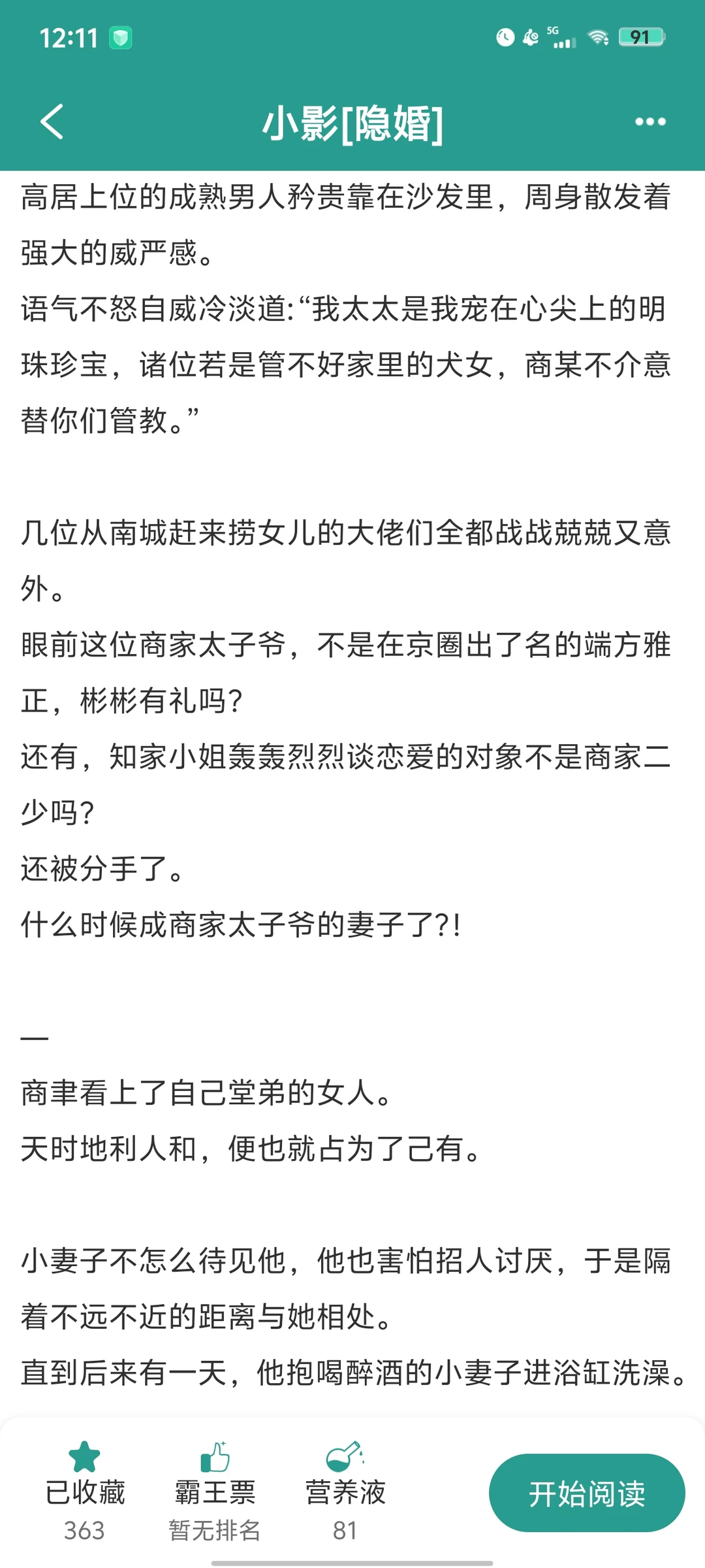 《小影(隐婚)》by喵卜卜 正在连载的小说 [桃子R]女主是娇气千金,本来和男主堂弟有婚约,被男主截胡了。男主强势,外表温雅成熟,内里却是个动不动就吃醋的老男人。是个超绝引导型恋人。既当爹又当妈,照顾女主无微不至,因为她的开心而开心,因她的进步而自豪。女主是温柔娇气千金,男主内外超绝反差,好看!