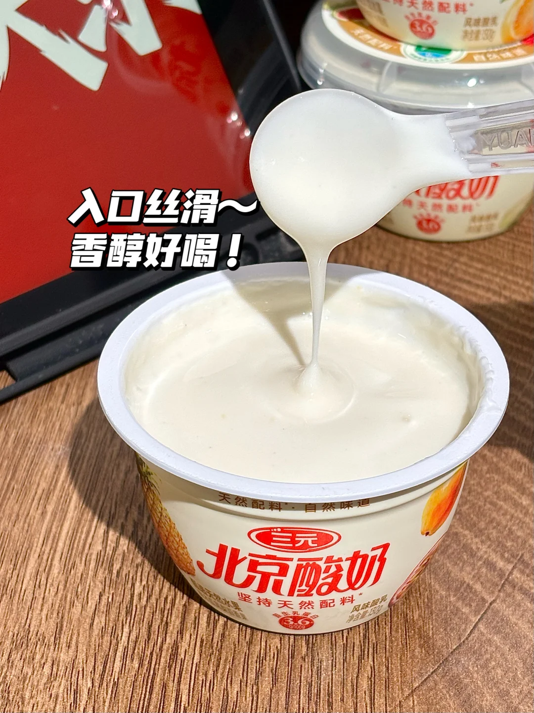 过年聚餐大鱼大肉完难免感觉油腻 可以在饭后的时候来上那么一杯三元北京酸奶 解解腻!