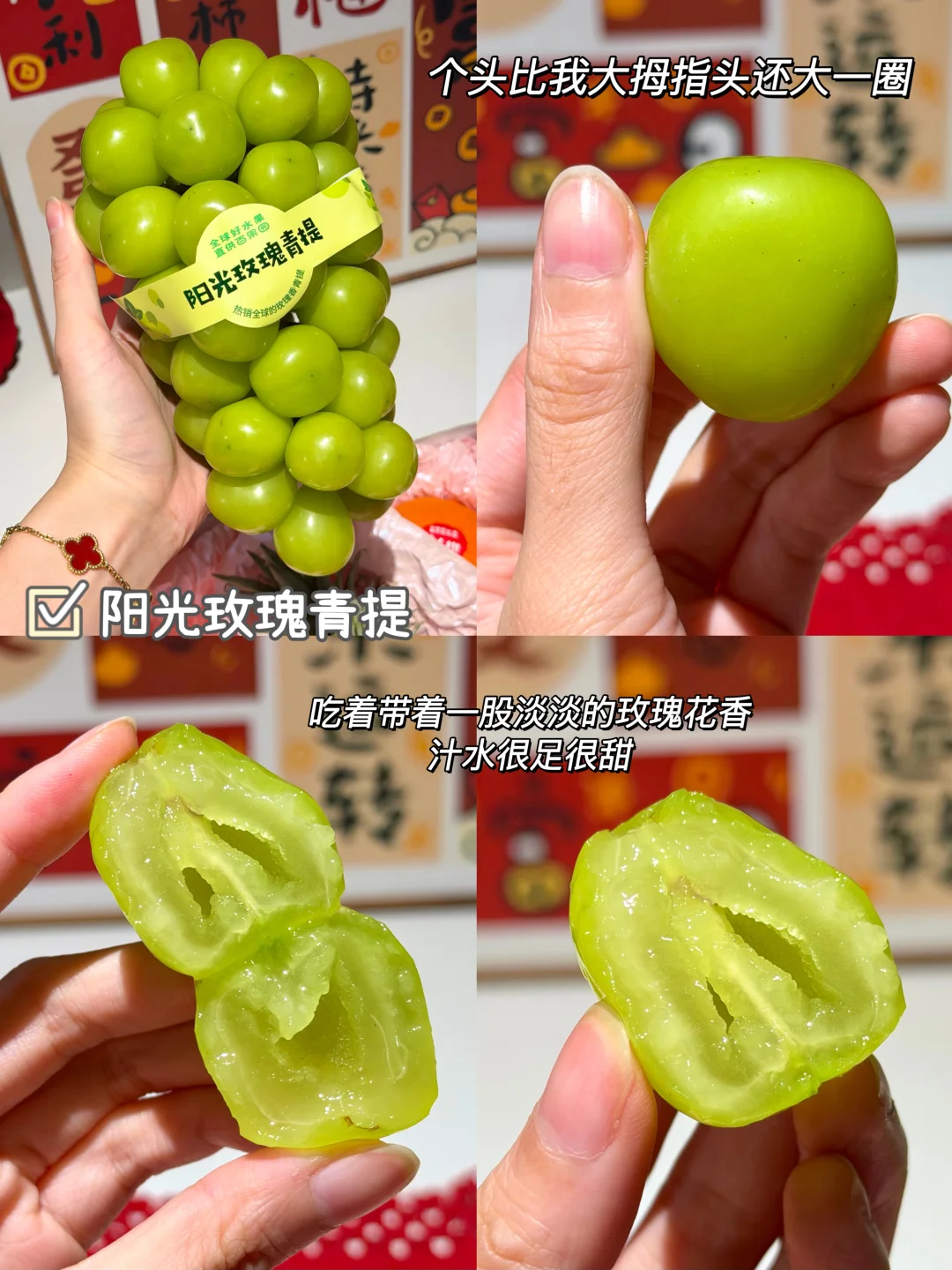 🍇A级阳光玫瑰青提也很不错,吃着自带一种淡淡的花香,每个青提个头比我大拇指头都大一圈,很甜,特别清爽解腻✌️可以年夜饭备上一些
