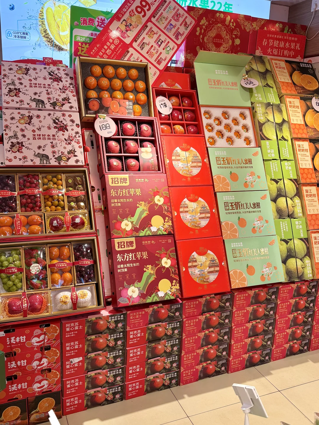正好最近囤年货嘛,我们又在百果园买了好多的水果年货礼盒送人