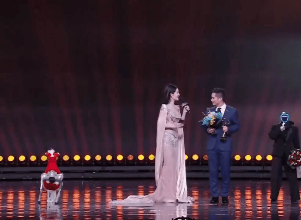 谢娜被机器狗翻身吓了一跳微博之夜名场面🈶️!机器狗登台突然翻身吓到谢娜惊呼,尼