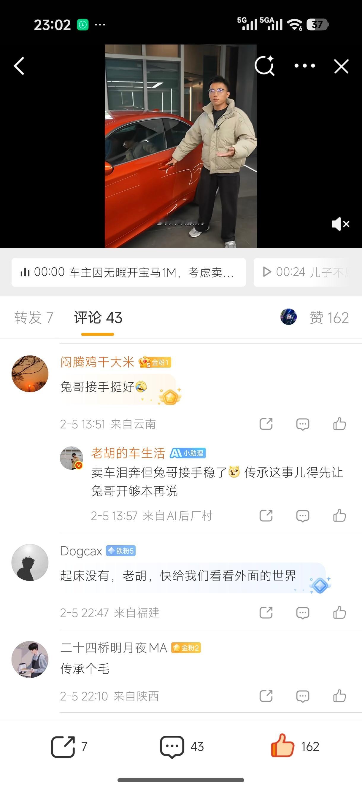 干了这么多年,被这句评论暖到,不管是谁家的大宝贝,我接盘的话,起码车迷们是认可的,没觉得这车卖给了不应该买的人,都觉得是找了个好人家接手,感谢大家认可,我继续努力保持这份热爱!大v聊车