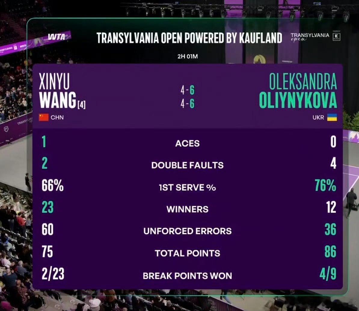 王欣瑜🇨🇳4-6/4-6不敌奥利尼科娃🇺🇦,无缘半决赛。身体状态不佳,希望能好好调整,下一站加油!