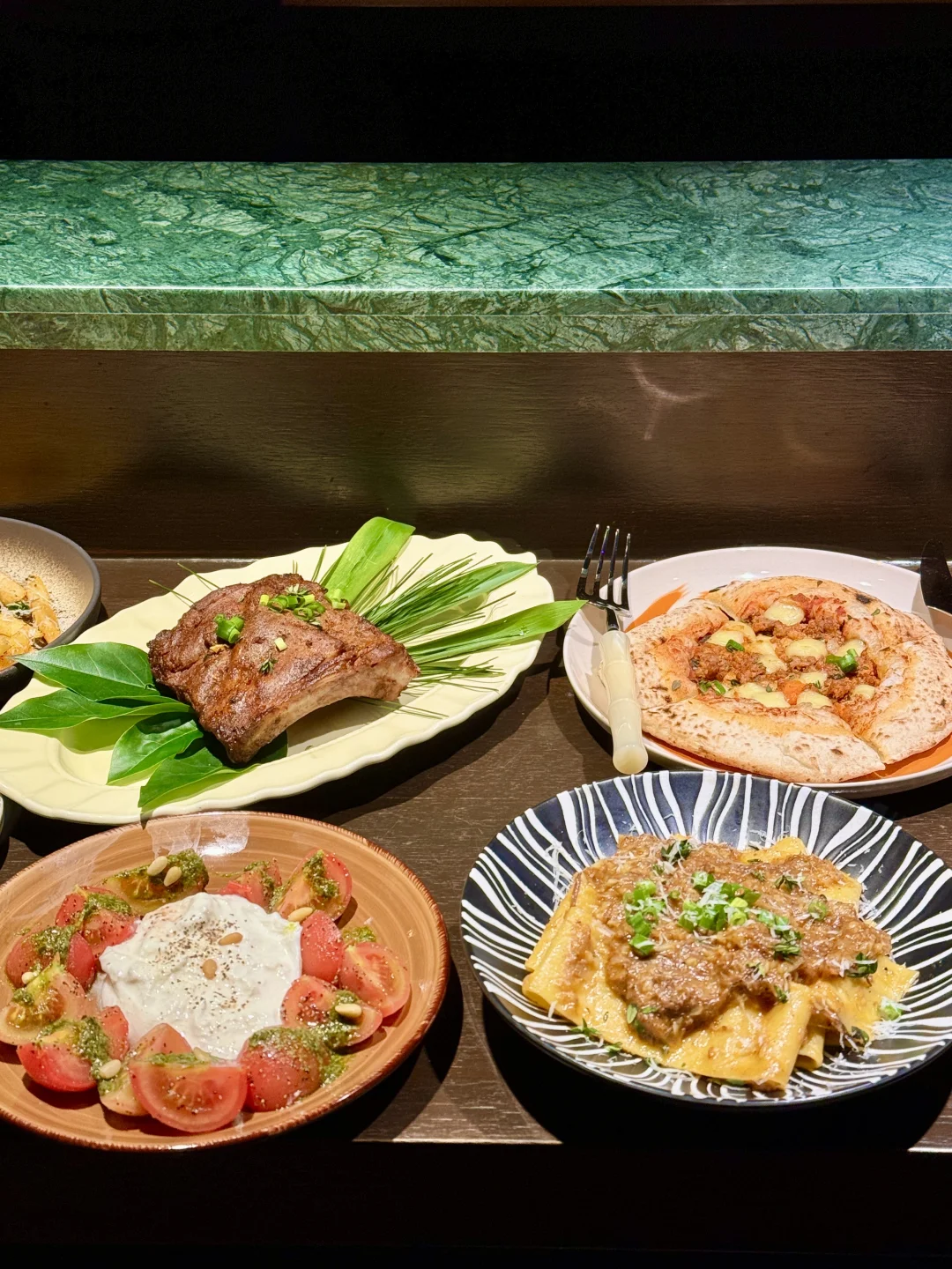 店内一圈吧台围坐 灯光气氛放松 🇮🇹意大利街头小吃适合佐酒🍾 和朋友喝酒聊天好chill 羊肉意面 第一次吃到的口味 夯爆了!!