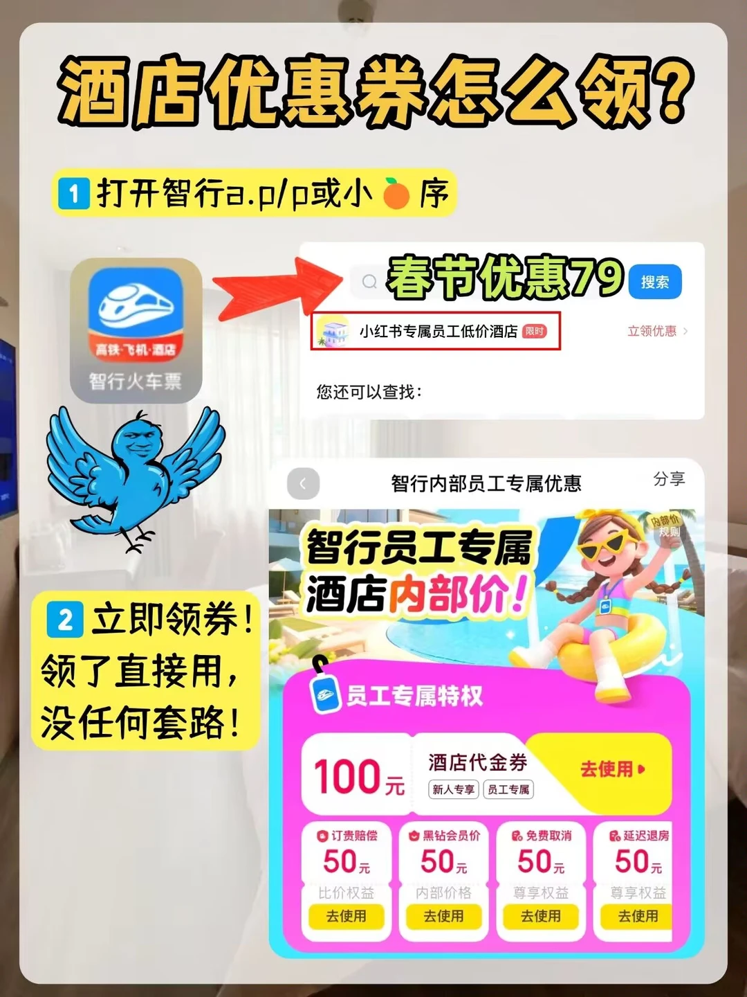 春节度假、寒假出行订酒店前,记得先领券再下单,平台补贴上还能再省100块,不拿真的亏😭