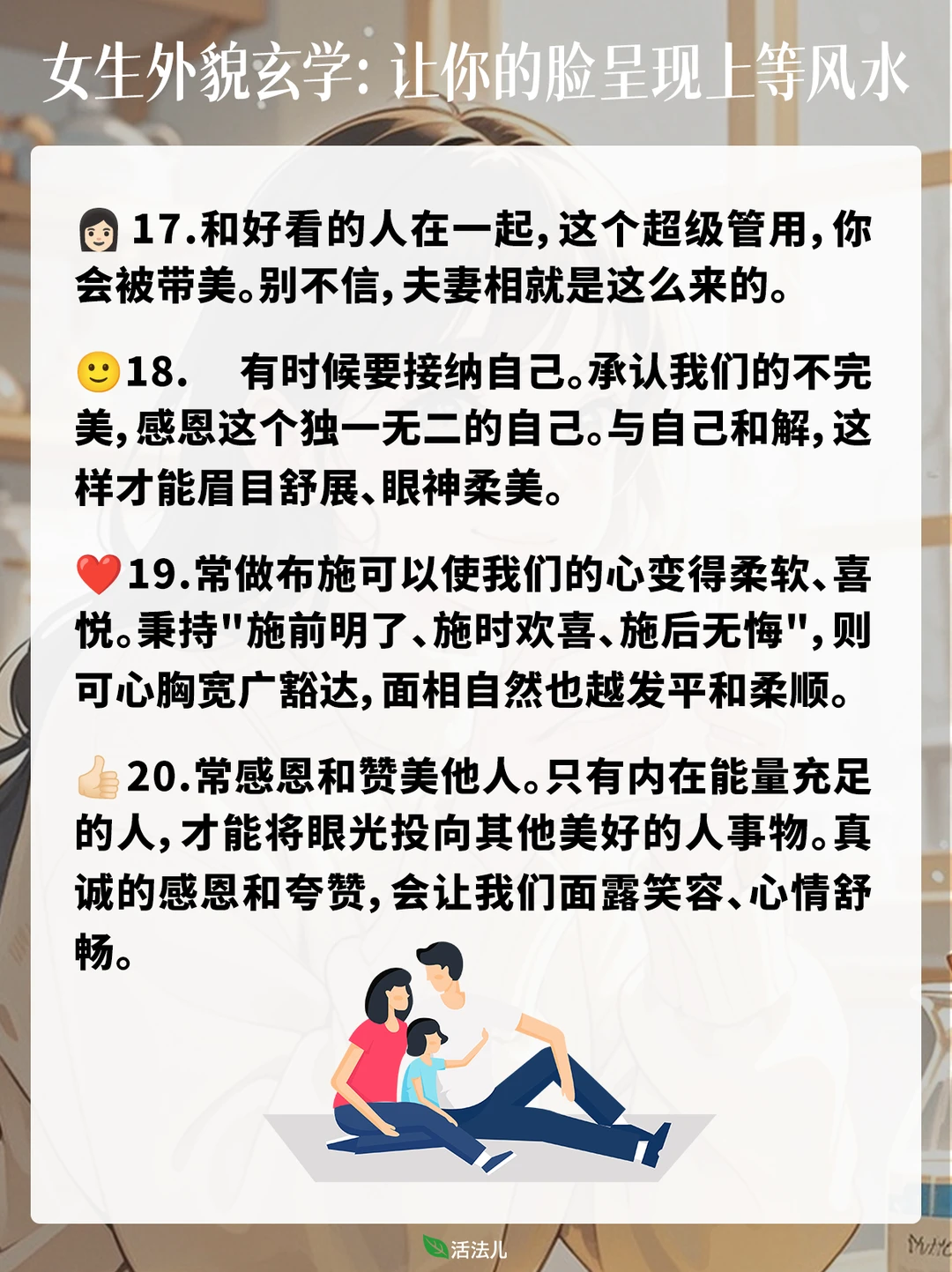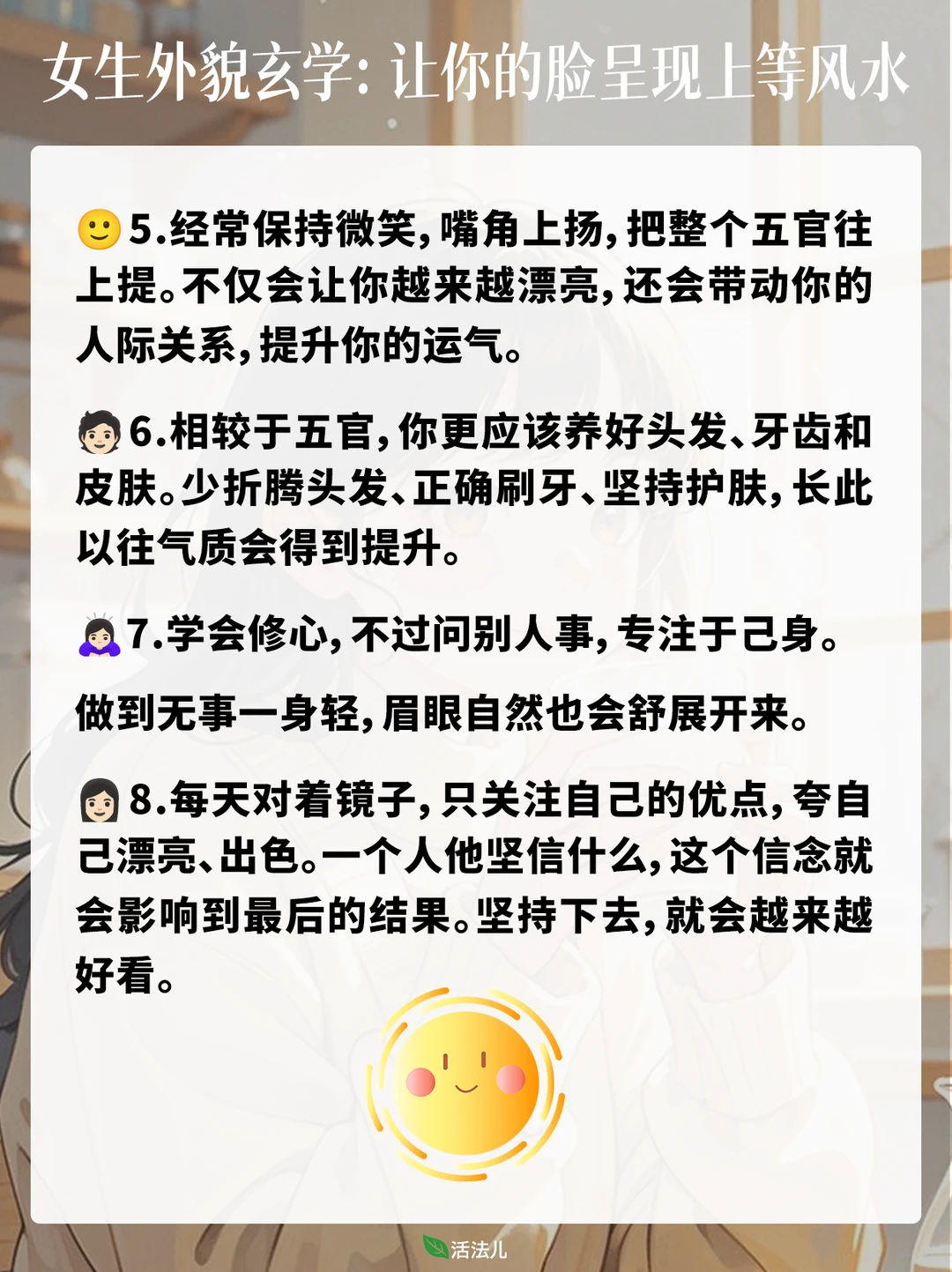 生活美学 养生 健康养生 上等风水在自身 相由心生心善则貌美 女生独自美丽