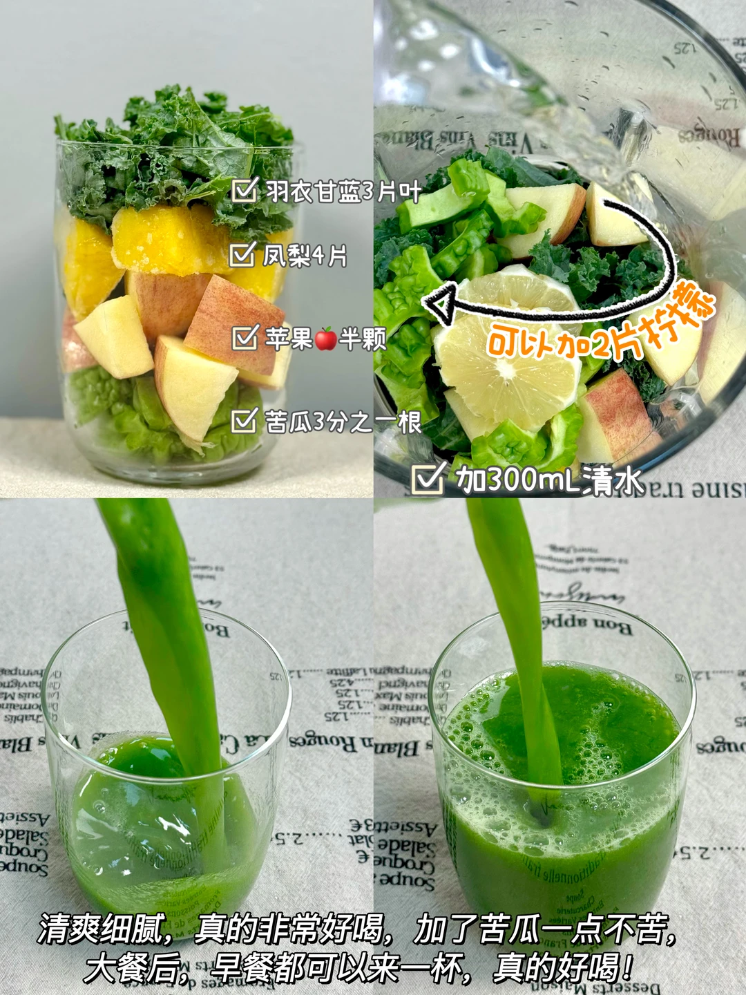 2️⃣羽衣甘蓝➕凤梨➕苹果➕苦瓜