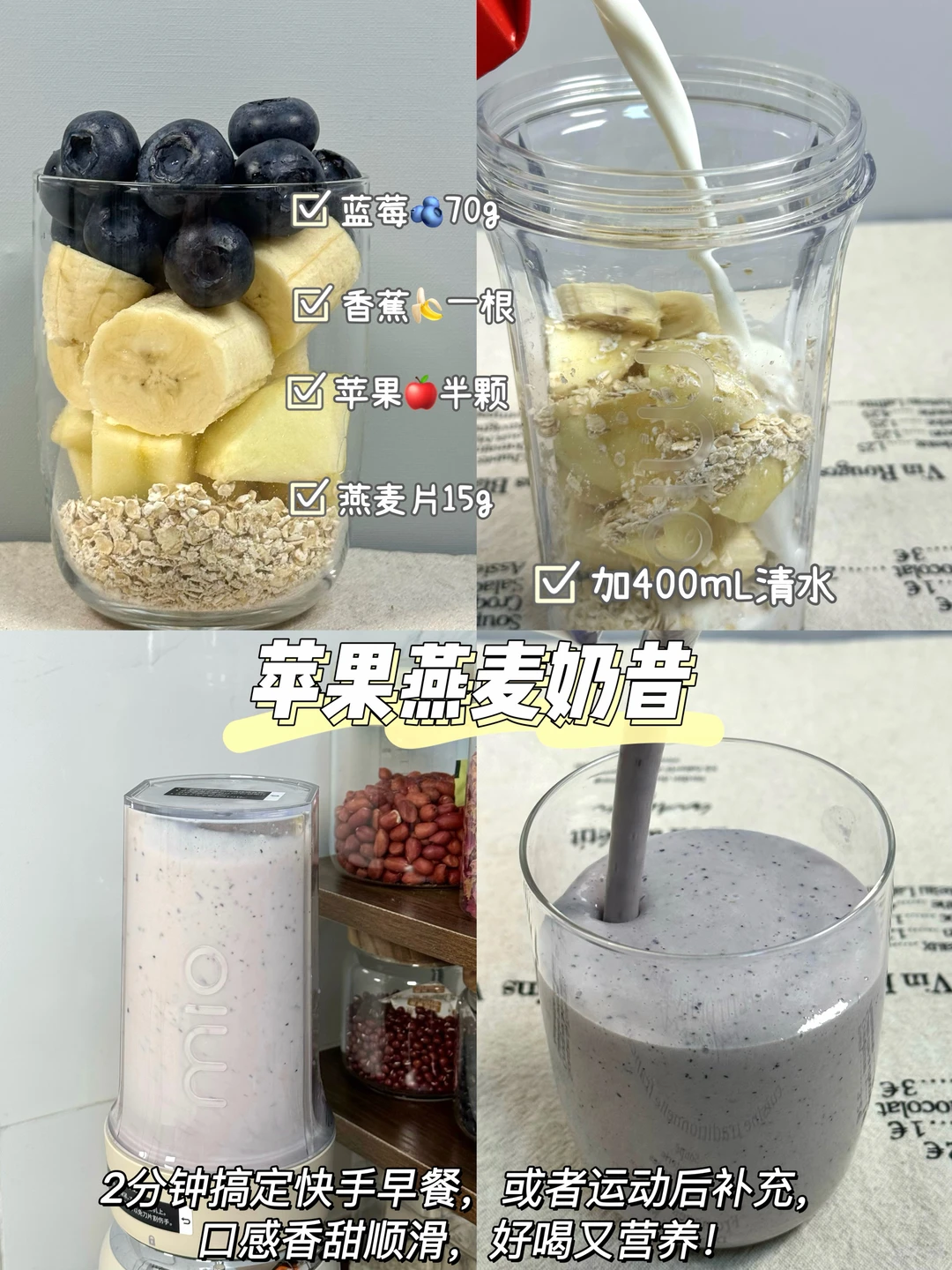 4️⃣蓝莓🫐➕香蕉🍌➕苹果➕燕麦片
