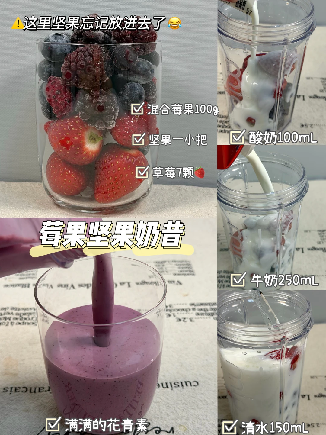 1️⃣混合莓果➕草莓➕坚果➕牛奶