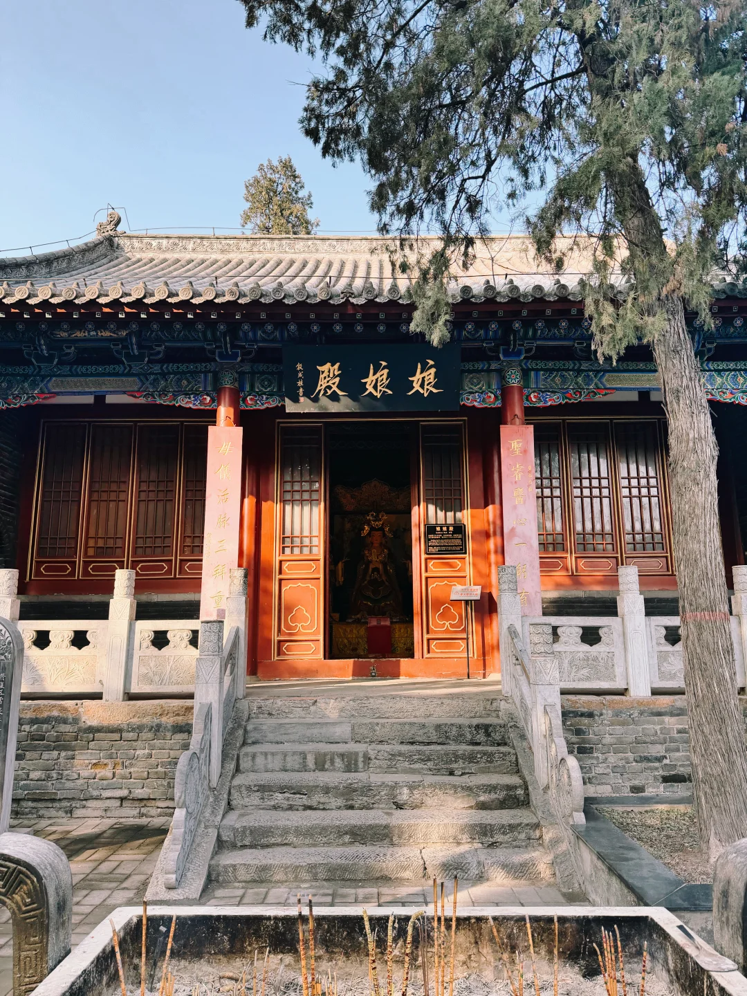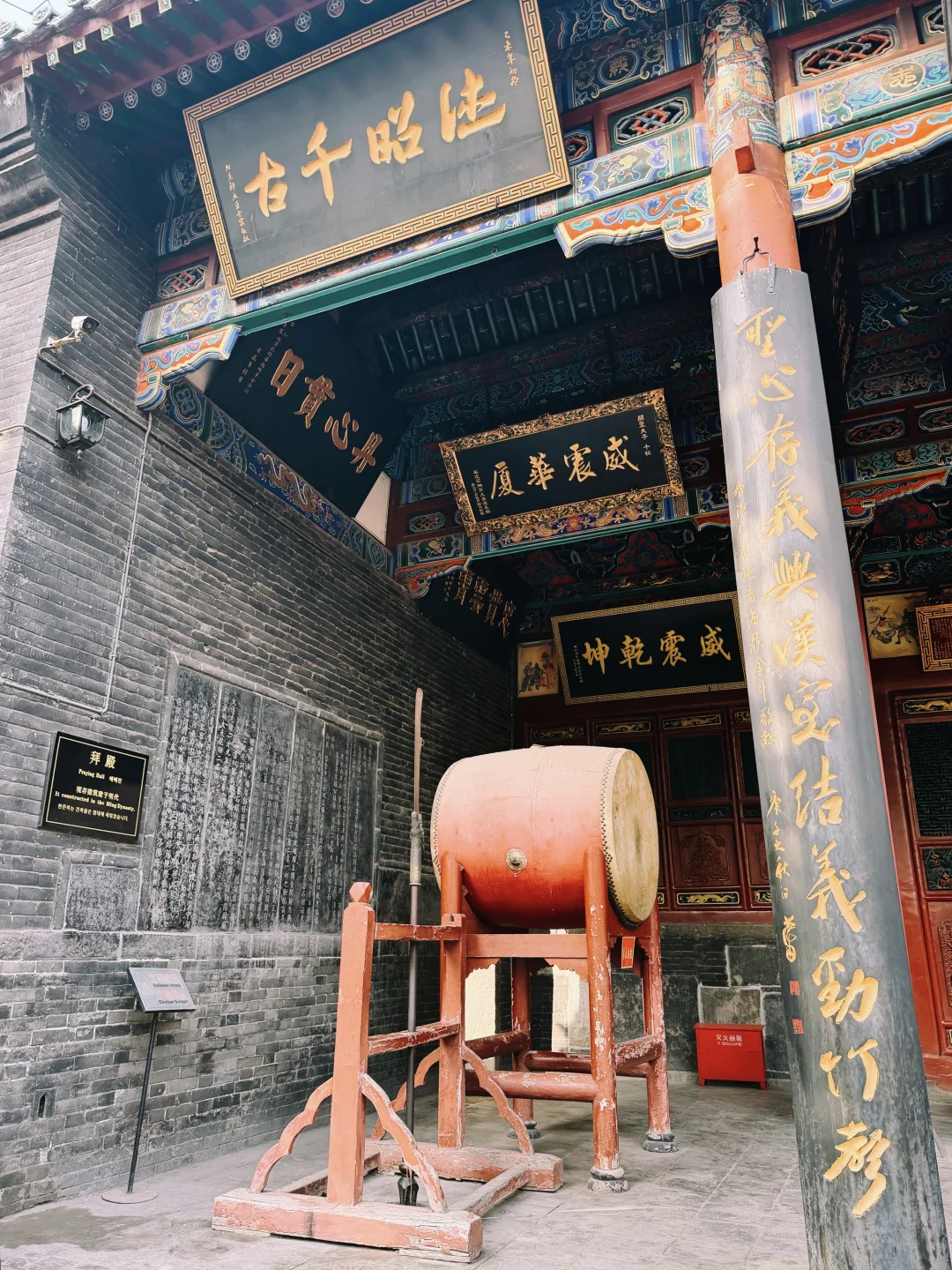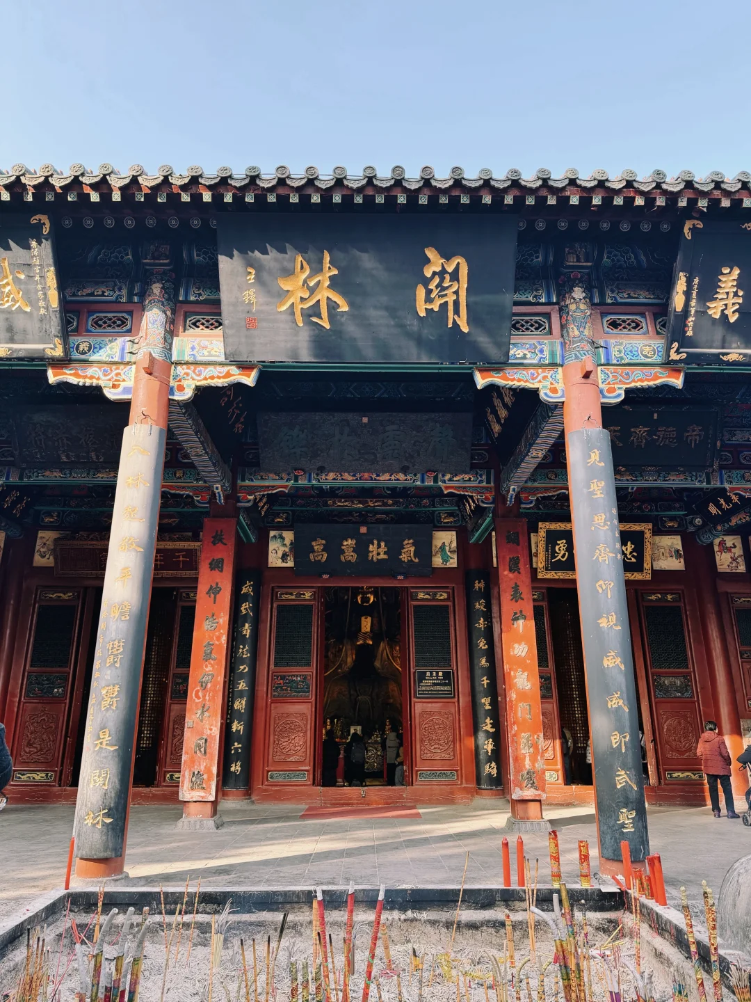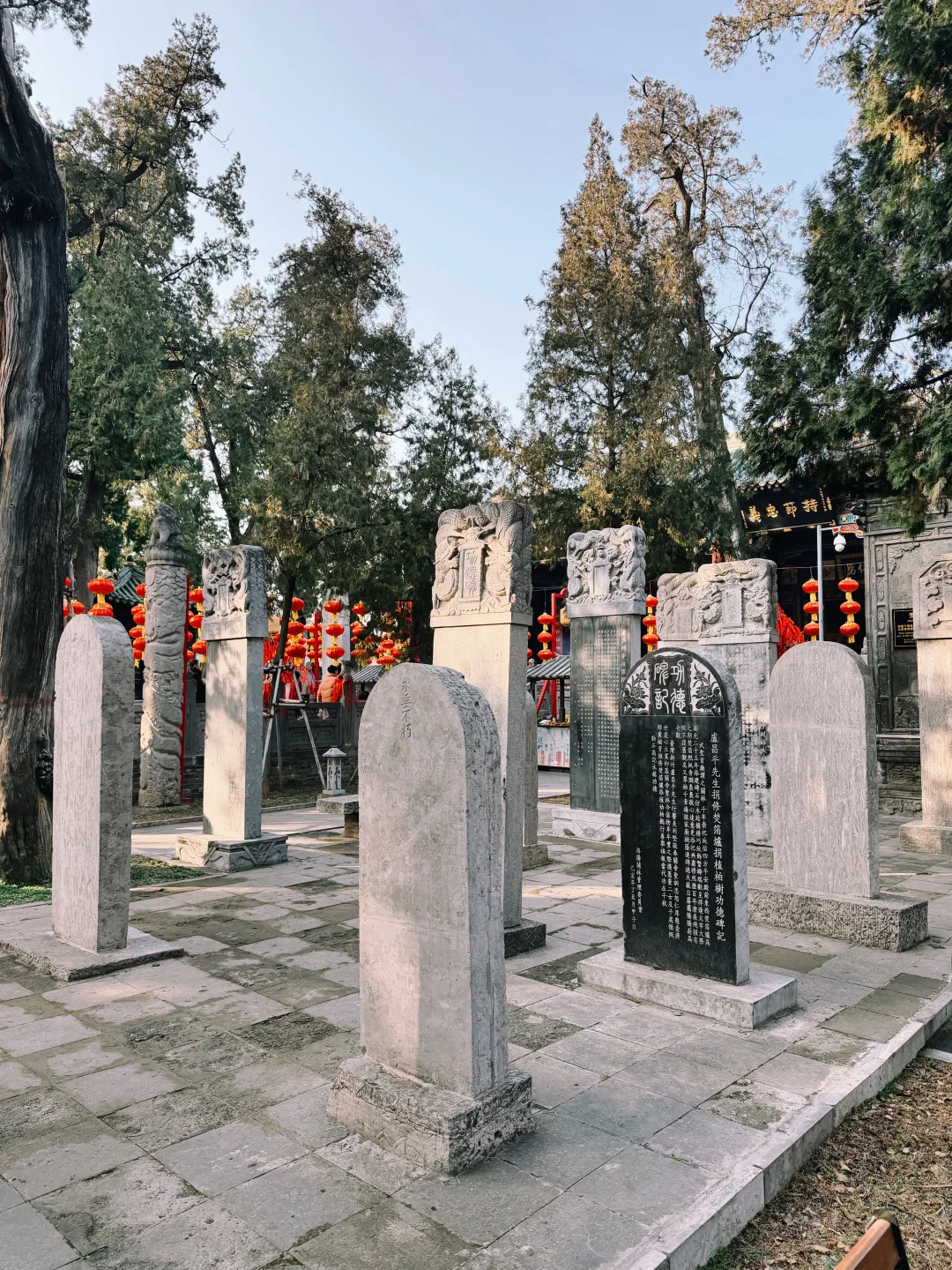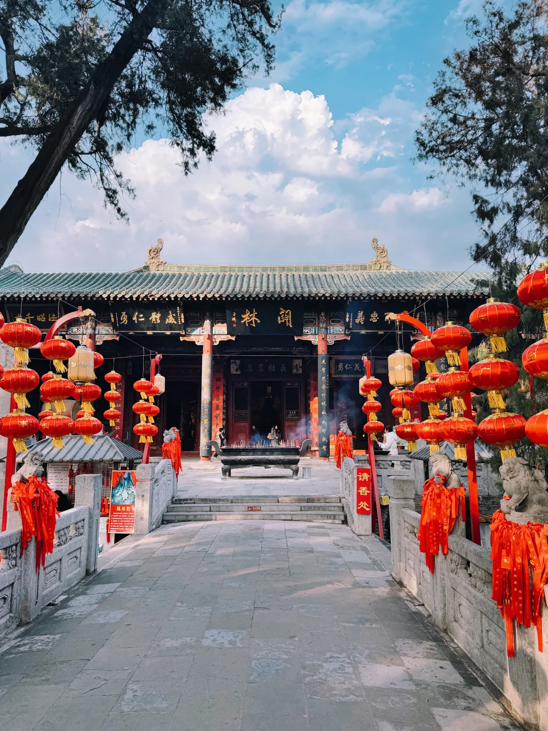 [种草R]现存建筑规格按照宫殿形式修建,布局严谨壮观。庙前有戏台,中轴线建筑依次有大门、仪门、甬道、拜殿、大殿、二殿、三殿、石牌坊、林碑亭、关墓。