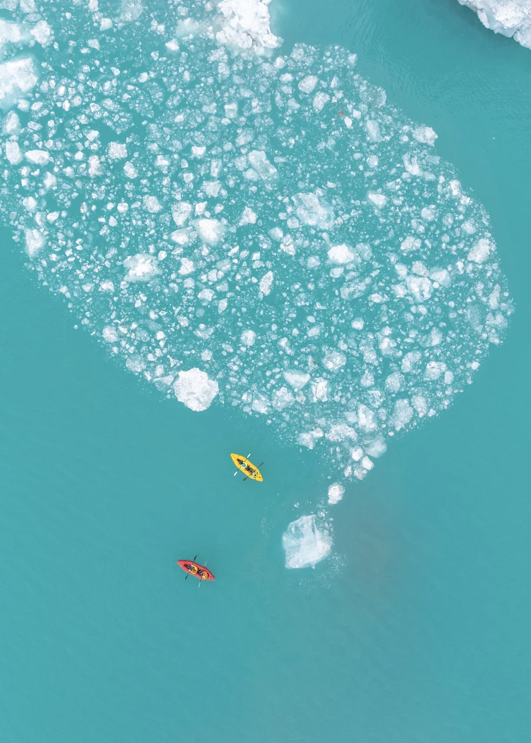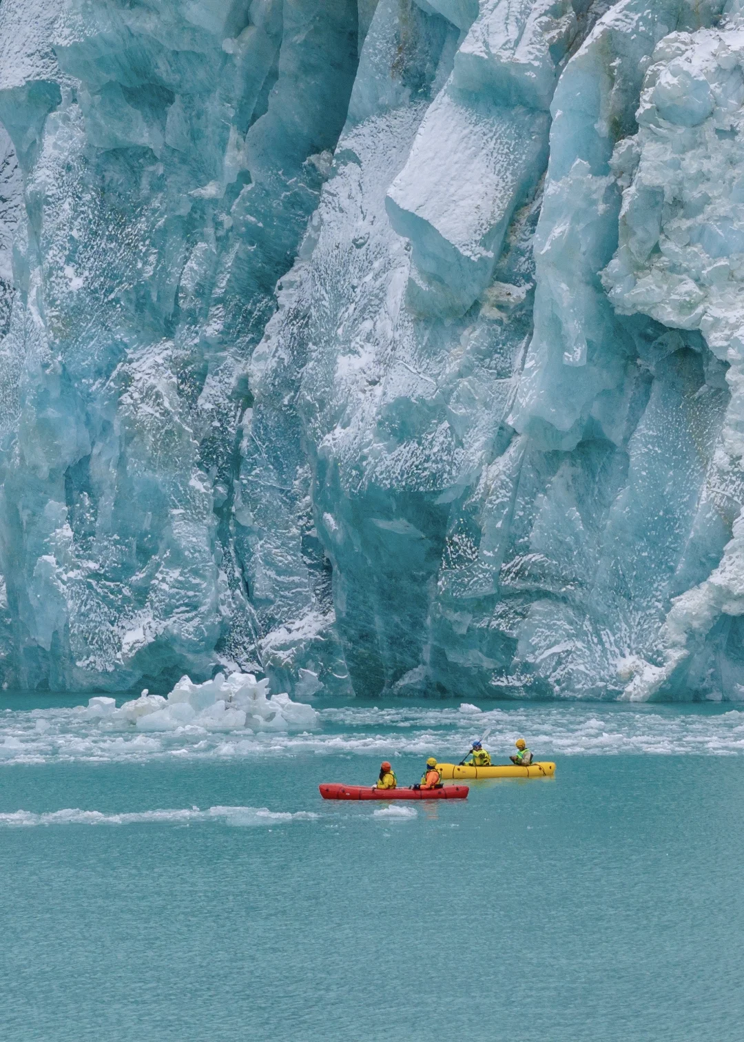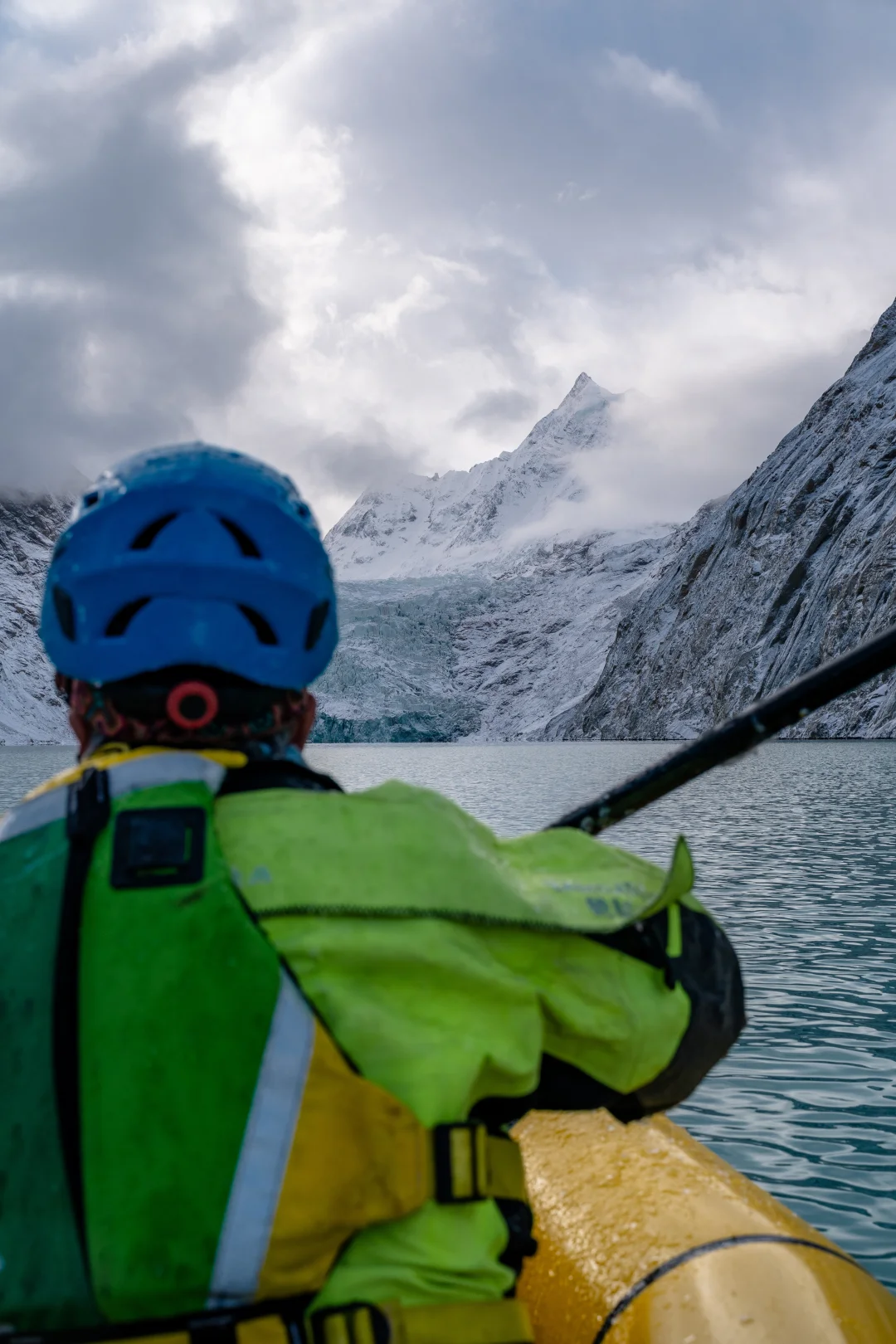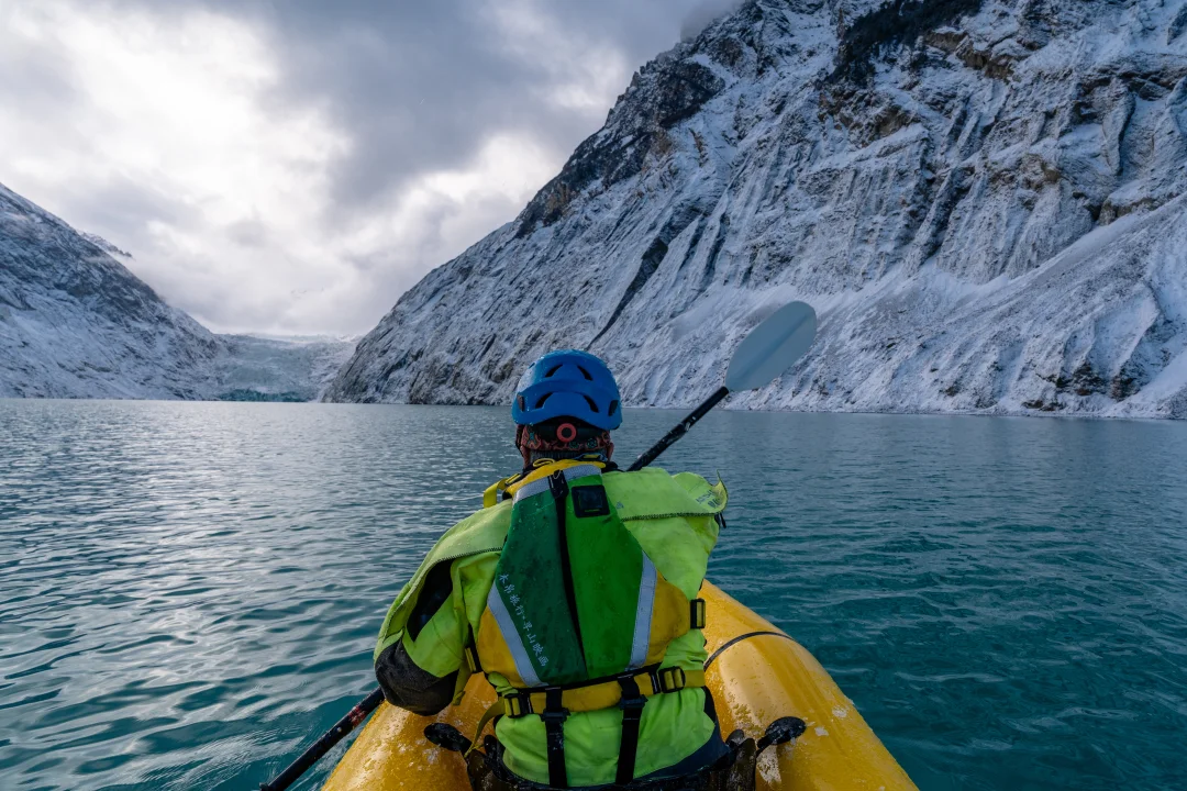 雪后的冰川湖是另外一种截然不同的景色。仙气缭绕的雪山和蓝冰,肉眼才能捕捉到的美。 高寒地区皮划艇游玩需配备专业齐全的装备: 专业干衣、浮力救生衣、安全头盔