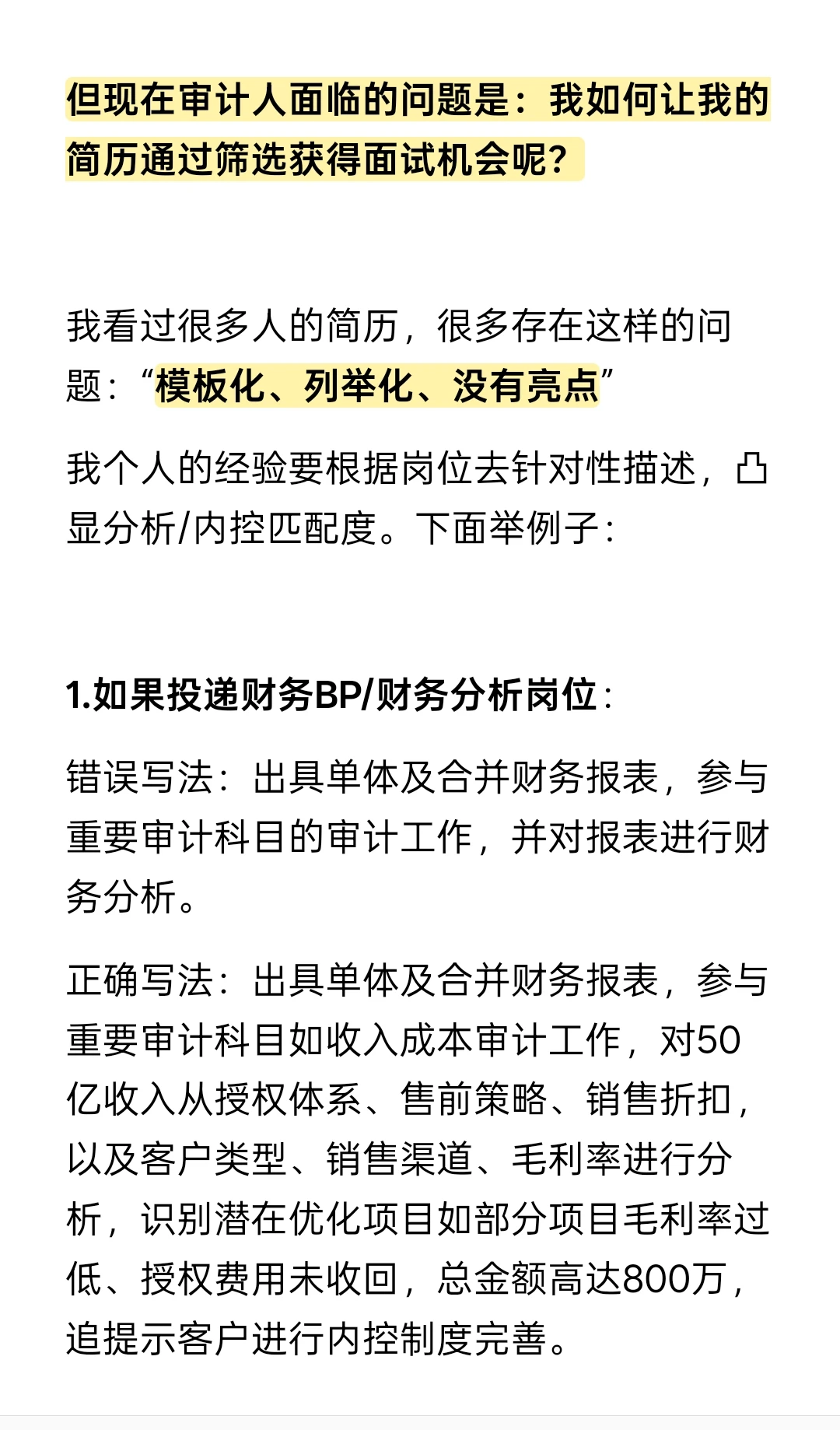 但现在审计人面临的问题是:我如何让我的简历通过筛选获得面试机会呢?