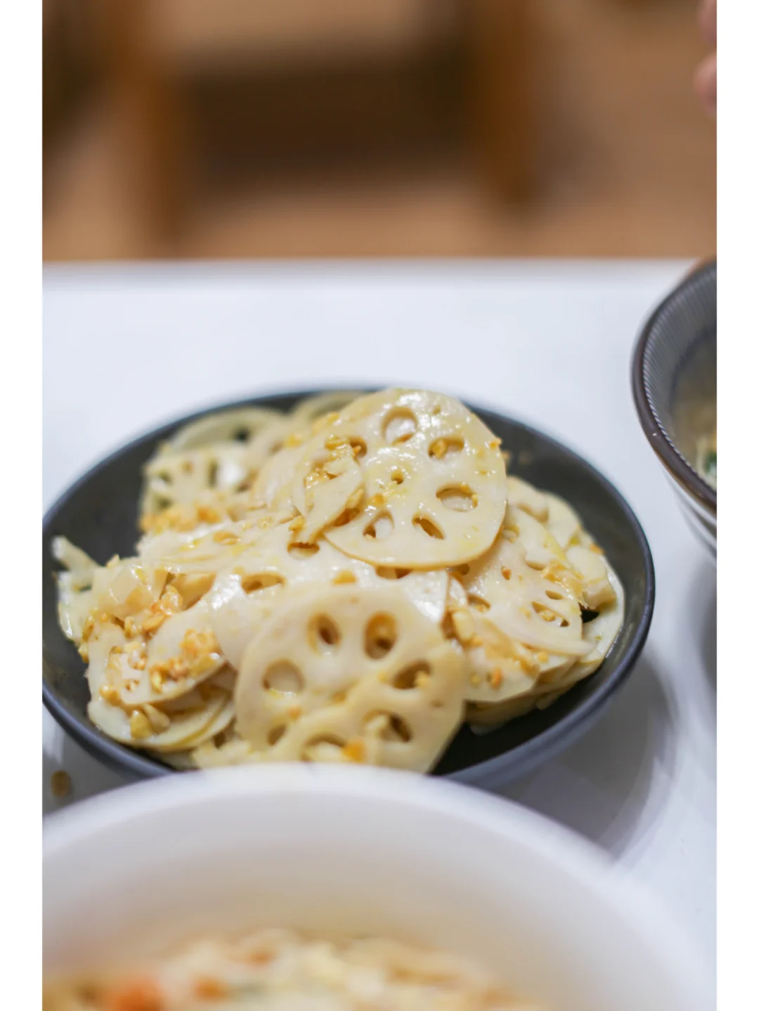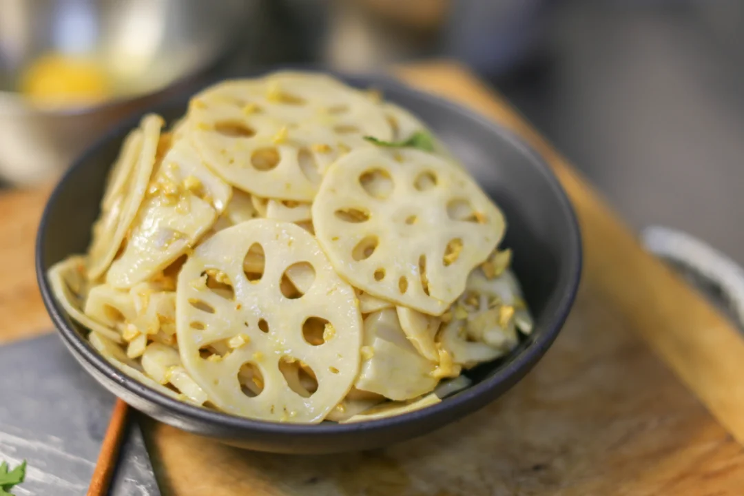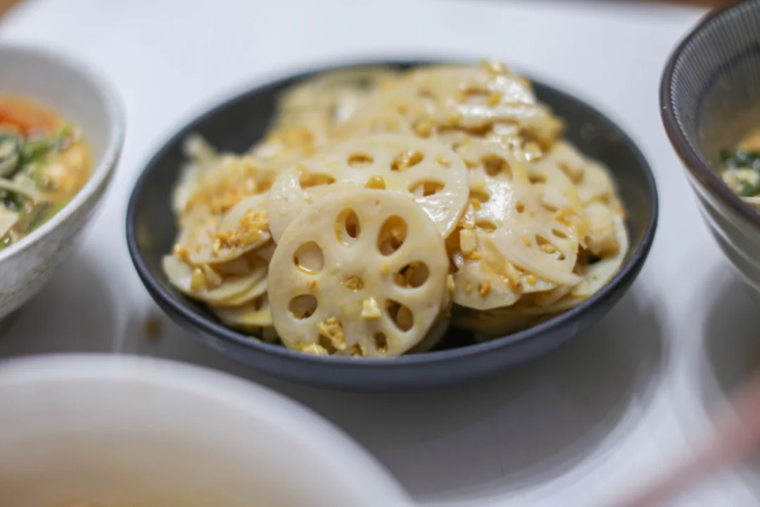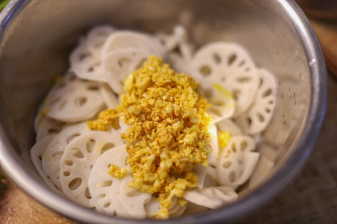 烧一锅清水,待水沸腾时,将藕片轻轻滑入。焯水的时间要恰到好处,约莫一分钟,藕片变得透亮即可捞出,过一遍凉水,让口感更加脆爽。沥干水分后,将藕片放入容器中,撒上金黄的蒜蓉,淋上少许生抽、香醋,再点上几滴香油。最后搅拌均匀,一道清新爽口的黄金蒜蓉拌藕片就完成了。