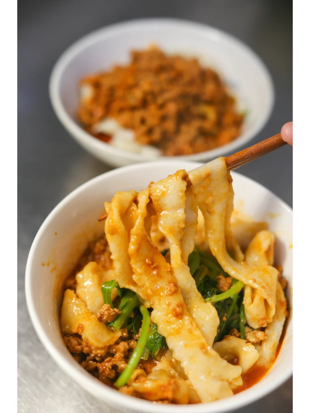 面团调的比例要比拉面稍硬一些,大概500克面粉,230克左右的清水。