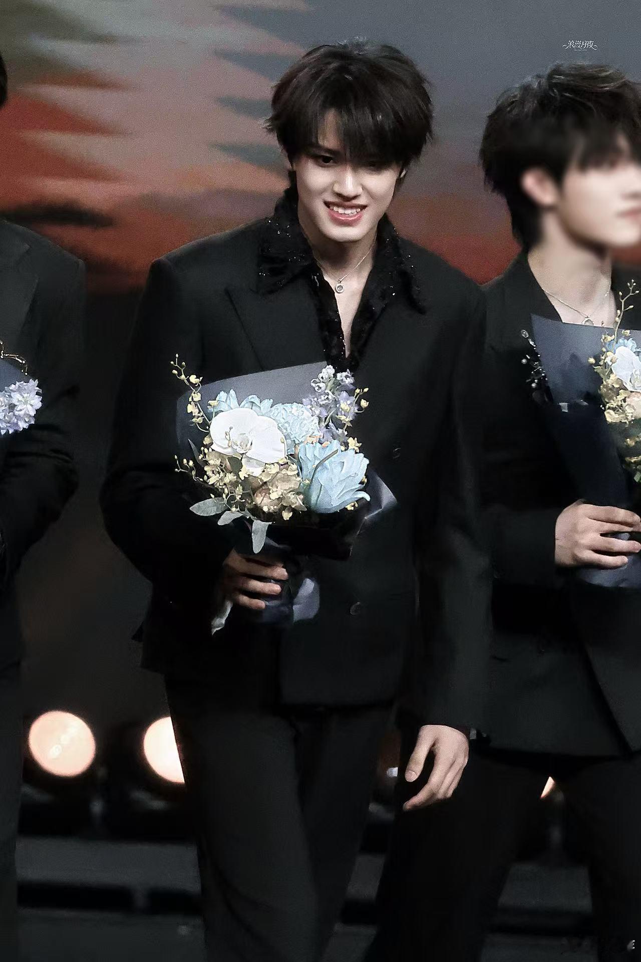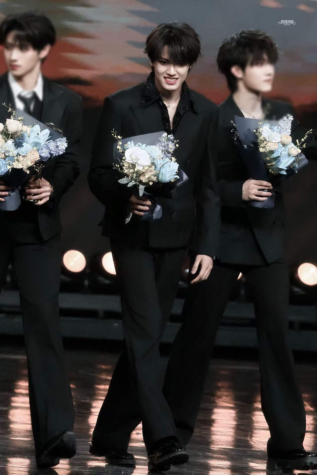 张极捧花贵公子 谁懂张极捧花的样子有多绝,西装搭蓝色花束温柔又显贵,游刃有余的状态太圈粉