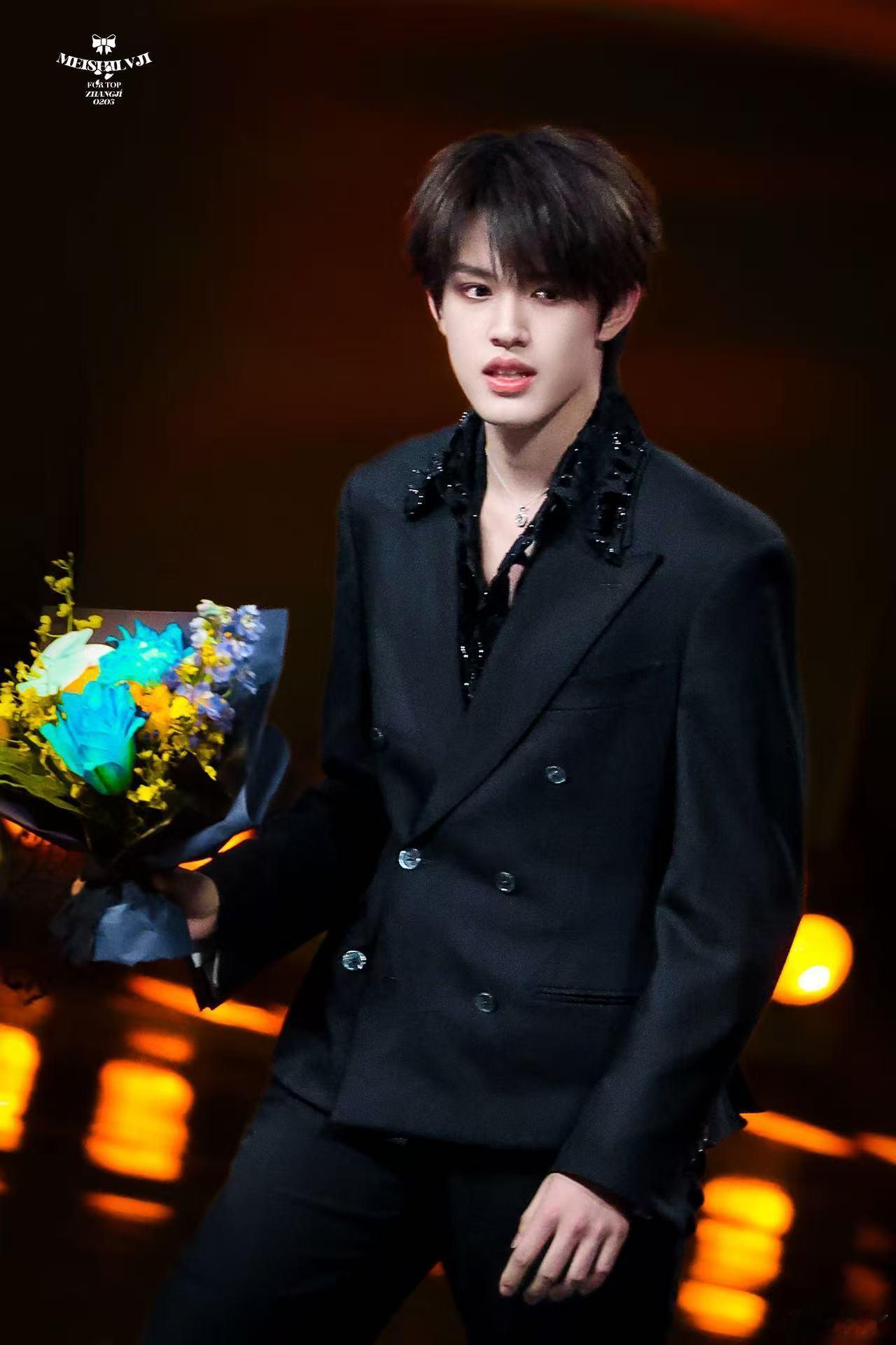 张极捧花贵公子 谁懂张极捧花的样子有多绝,西装搭蓝色花束温柔又显贵,游刃有余的状