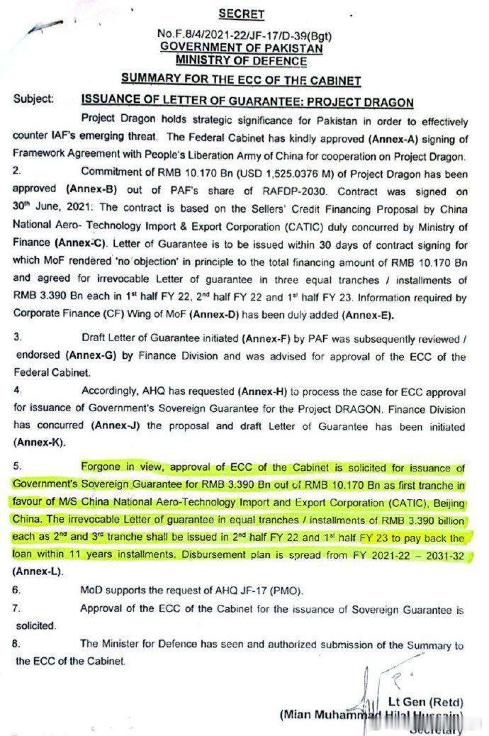 武器装备每天认识一件兵器烽火问鼎计划 J10CE猛龙单价和全寿命周期成本估算 南亚网友曝猛龙巴基斯坦采购文件。➡️合同总金额与支付方式 合同总金额:巴基斯坦政府与中国航空技术进出口公司签订的合同总金额为 10,136,500,000元人民币(约15.25亿美元,按2021年汇率估算)。 支付方式:合同采用分期付款方式,总期限为11年,包括3年的延期期和8年的分期付款期。每期本金等额分配,利息按年利率4.15%计算。➡️全寿命周期成本构成 全寿命周期成本不仅包括采购成本,还应考虑维护、升级、备件、人员培训等费用。根据合同内容,采购成本已明确,但其他费用未在图片中体现。➡️单机成本估算 采购数量:合同涉及20架J-10CE战斗机,单机采购成本约7858万美元。➡️全寿命周期成本估算 由于图片中未提供维护、升级等费用的具体数据,全寿命周期成本无法精确计算。但可以推测,全寿命周期成本通常为采购成本的2倍(参考F16)。因此,J10CE猛龙战斗机的全寿命周期成本约 1.57亿美元。由于巴基斯坦距离J10母国很近,返厂维护保养费用可大幅降低,实际全寿命周期成本会更低些。