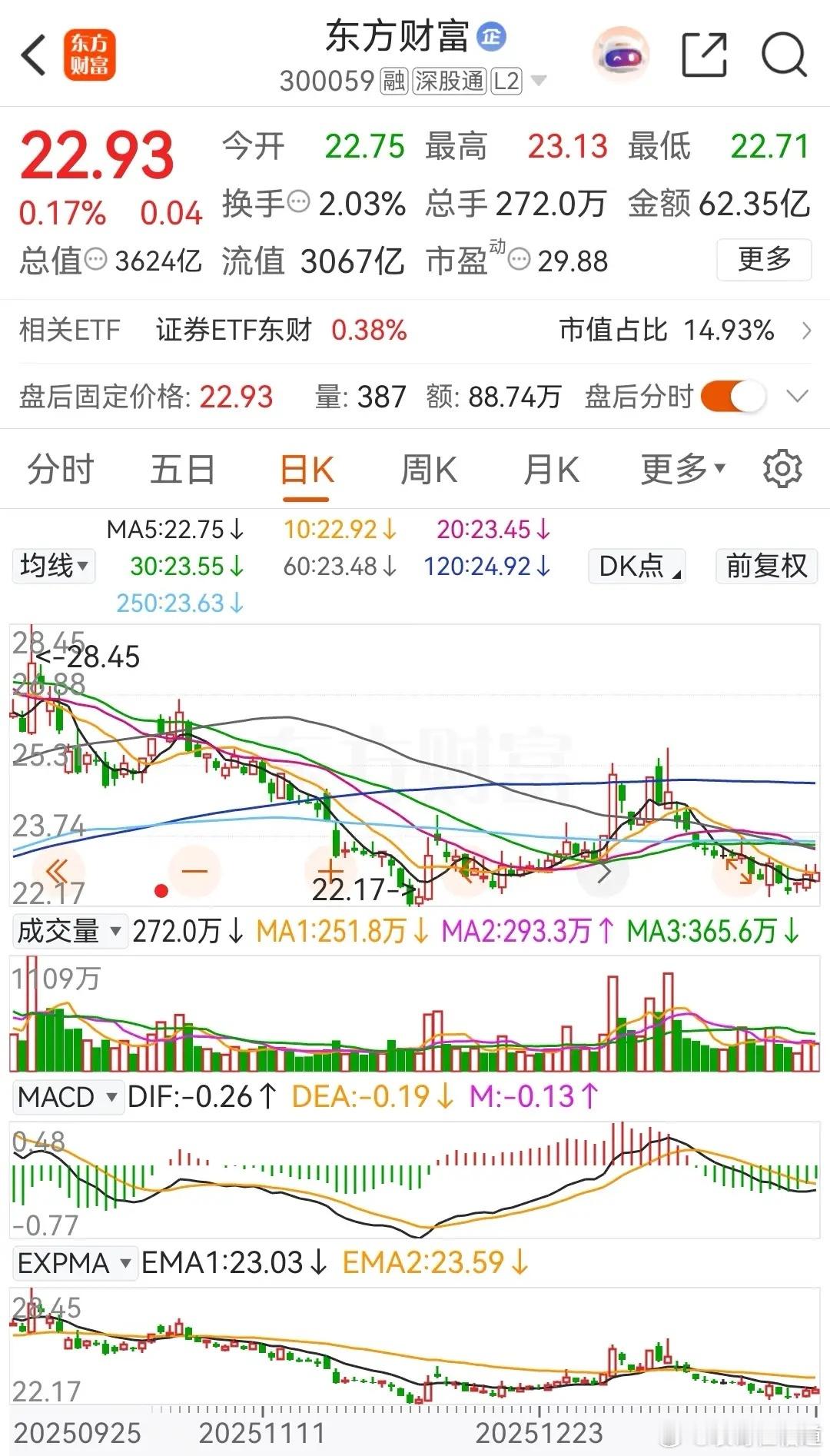 对于当前的券茅和券商一哥,二者的股价与业绩的显著背离。尽管2025年两家公司业绩均创新高(中信净利润300.5亿元/+38%,东财前三季净利润90.97亿元/+50%),但股价表现疲软: 中信证券在2025年微跌了0.62%,2026年1月份跌幅为2.19%,较2024年高点回撤超20%;东方财富2025年大跌10.02%,2026年1月的跌幅为2.07%,同期回撤超23%。