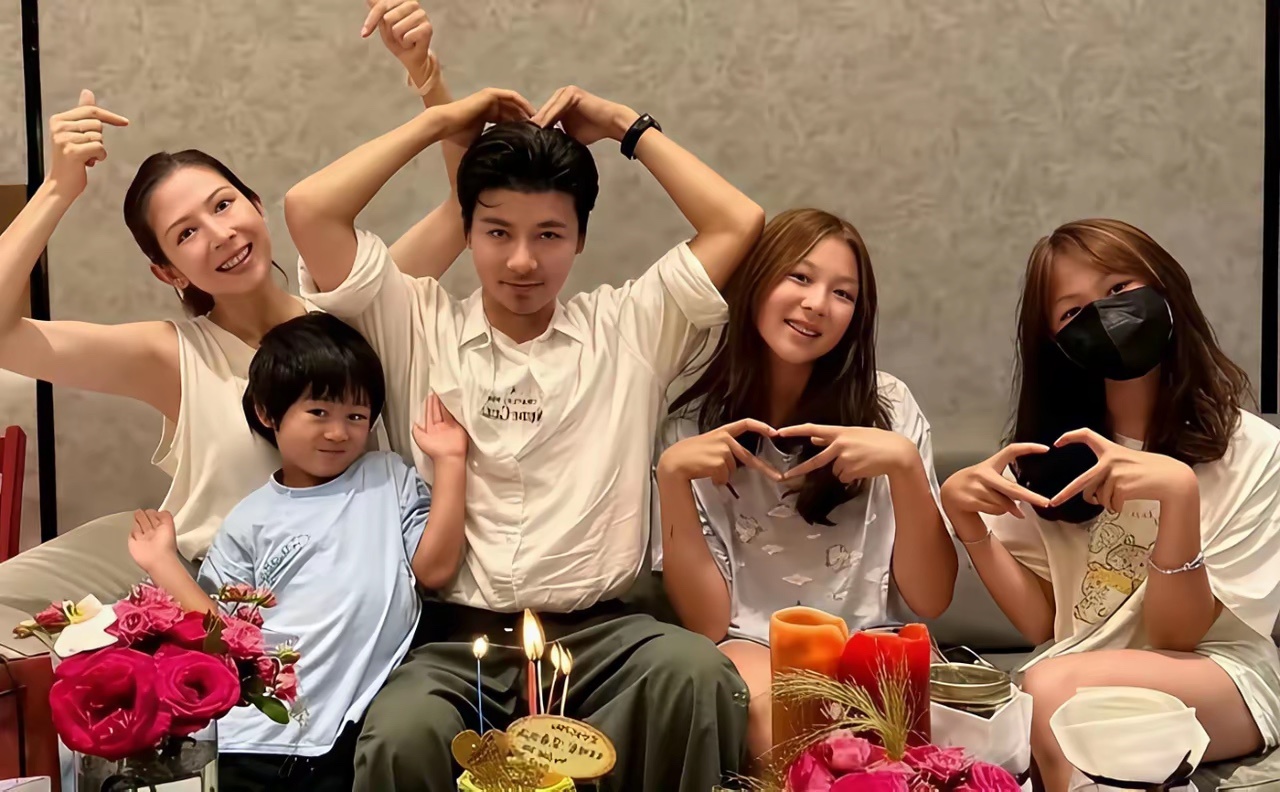 蔡少芬的3个孩子,两个女儿和一个儿子,女儿长大了不少,儿子还小,一家五口其乐融融