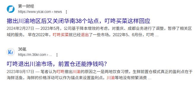 为了保利润,叮咚断臂撤退,放弃全国化的目标。陆陆续续撤出了川渝、广深等部分不盈利或竞争激烈的市场,彻底死守“长三角”大本营。
